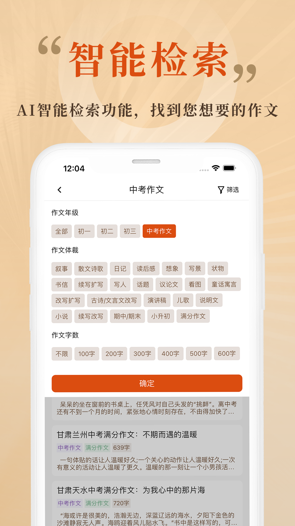 对于所有的作文类型,作文体裁,作文素材,古诗美文名句和英语作文,AI作文大全都提供了不同种类的搜索方式,更有高效和准确的关键词和关键句子搜索方式,让您可以准确的找到您想要的所有写作灵感和写作素材。