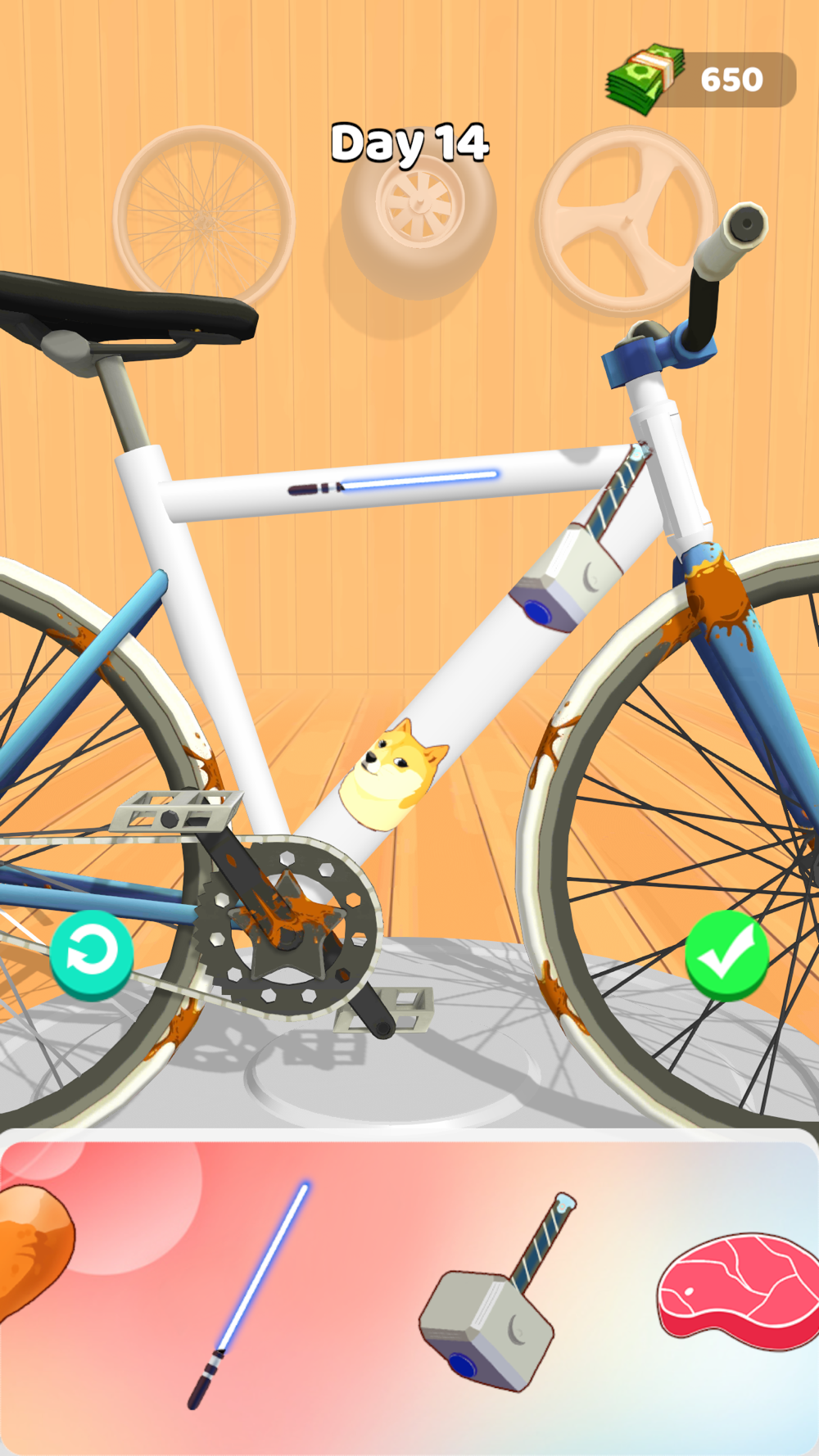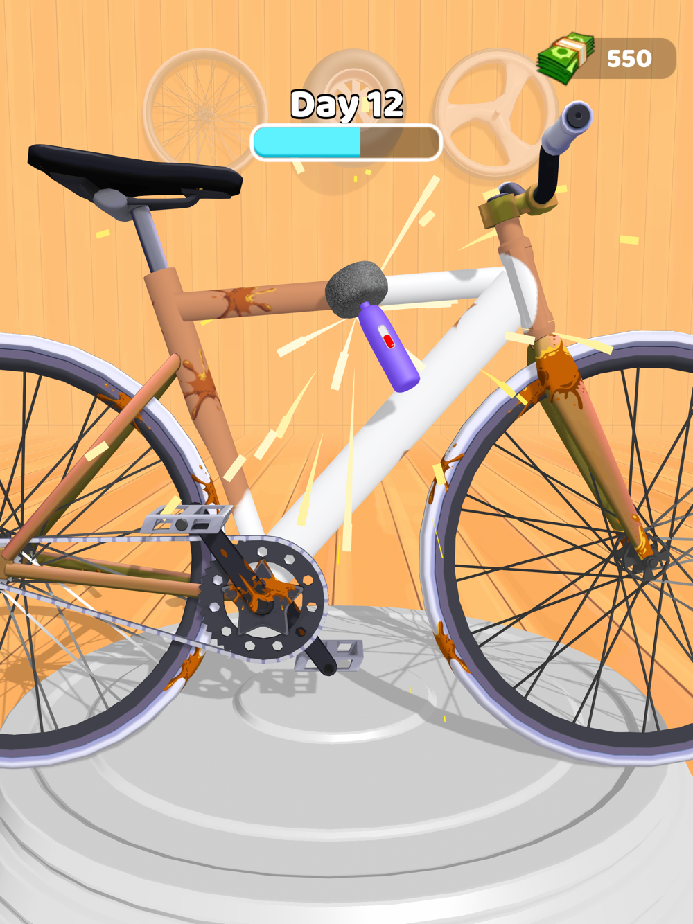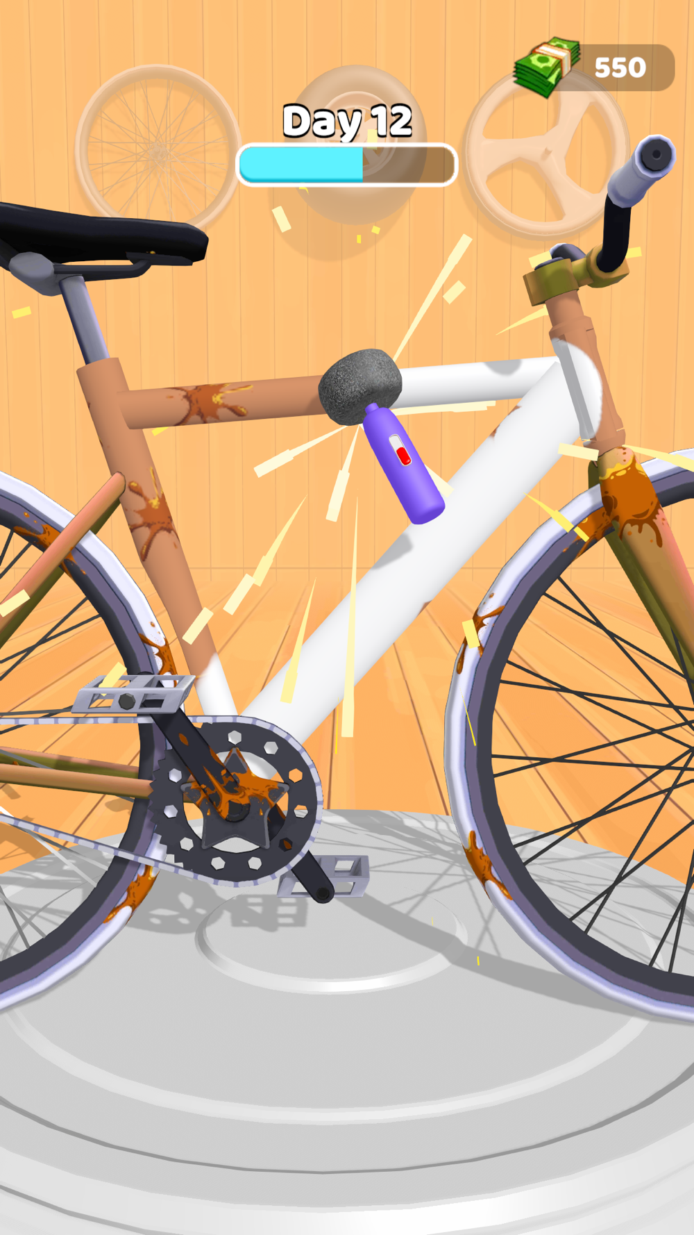 Simulate running an old bicycle repair shop, new customers bring an old bicycle and need your help, slide the grinder for polishing, click to select prints, paint, choose wheels, and more.