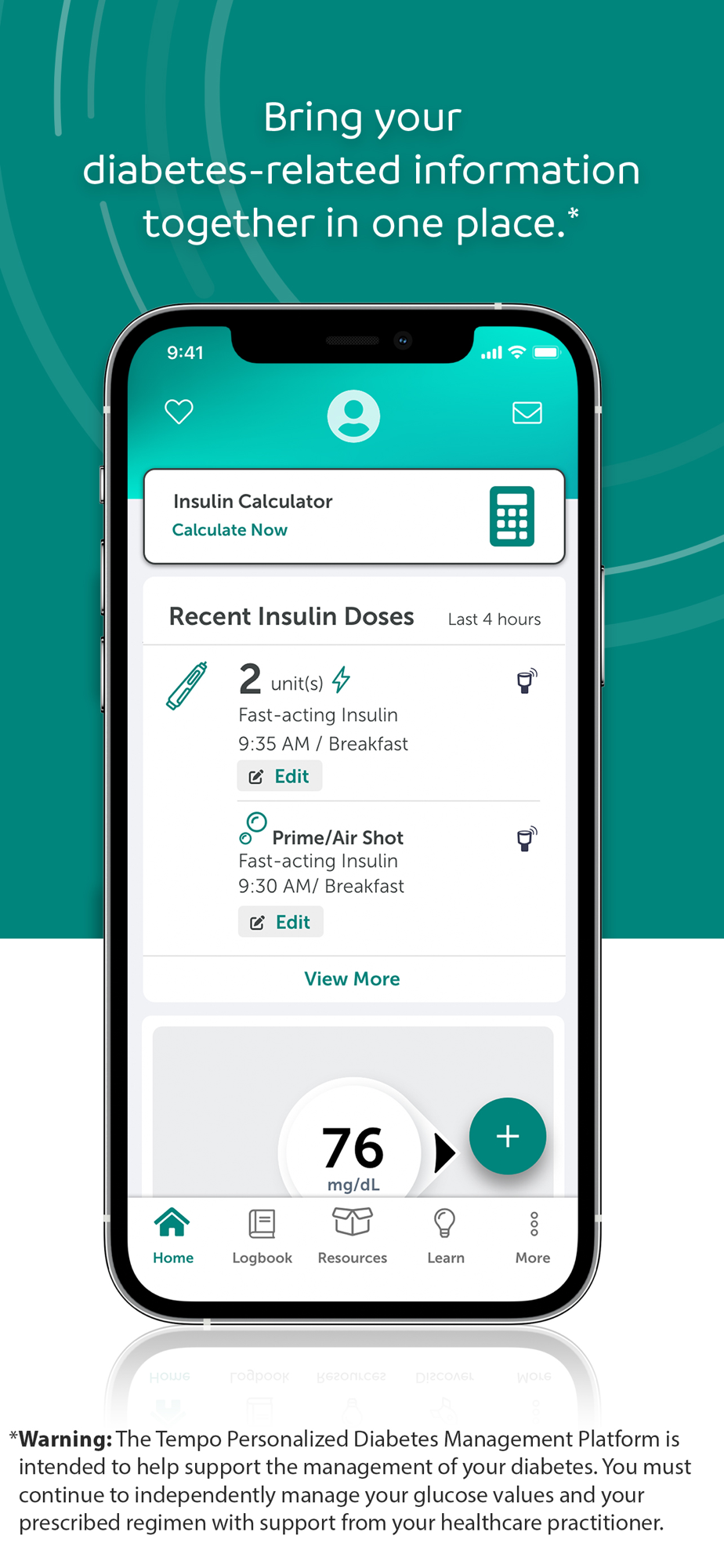 ‡Warning: The Tempo Personalized Diabetes Management Platform is intended to help support the management of your diabetes. You must continue to independently manage your glucose values and your prescribed regimen with support from your healthcare practitioner.