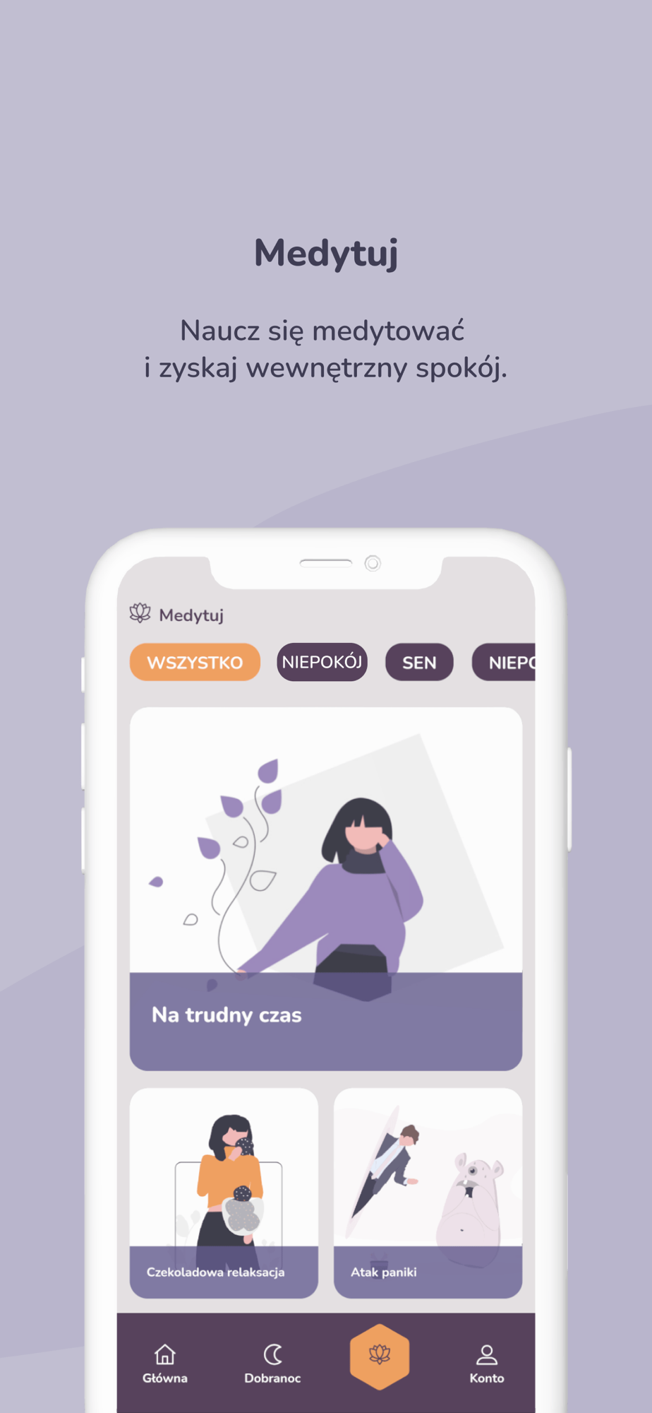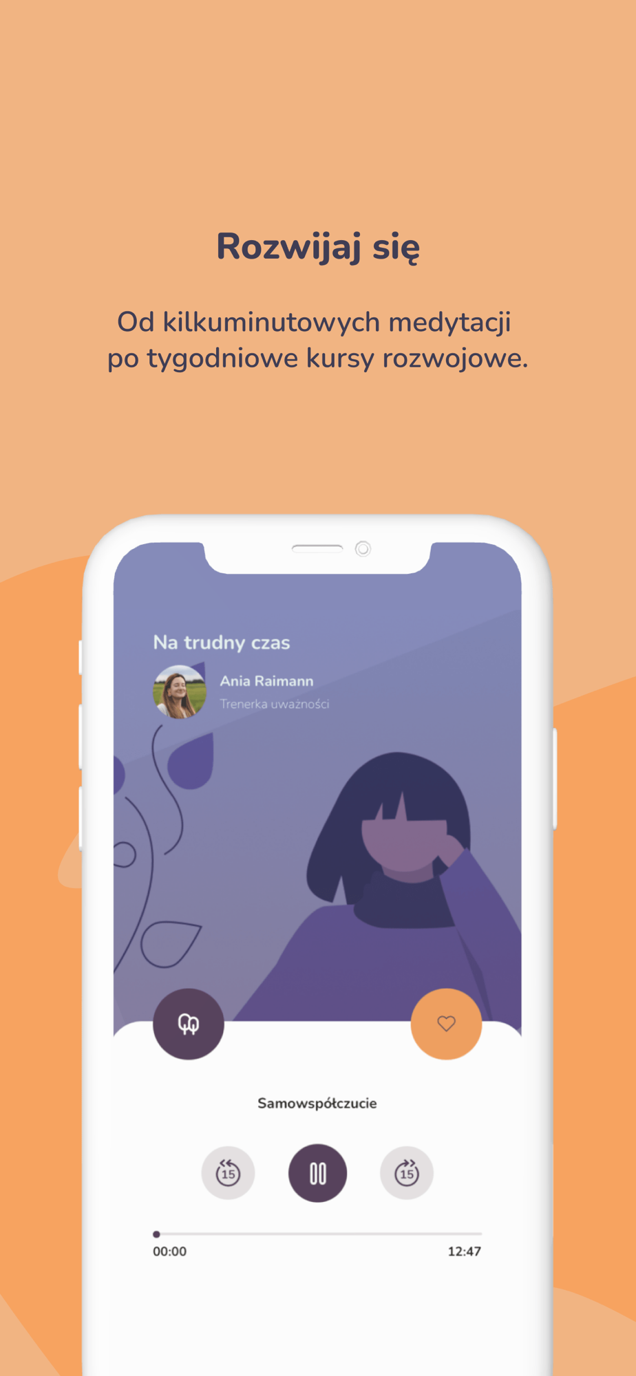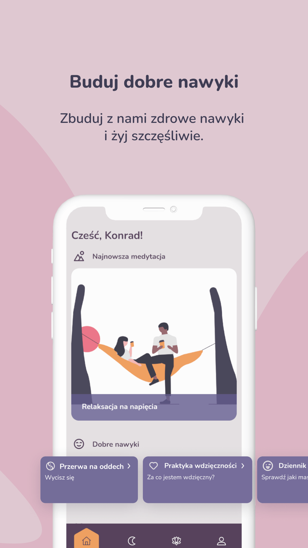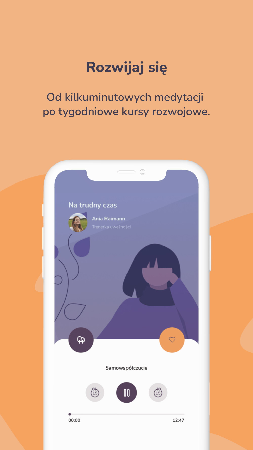 Znajdziesz tu jedynie świeckie medytacje i ciekawostki ze świata psychologii. Możesz korzystać z aplikacji niezależnie od wiary, nie znajdziesz tu treści ingerujących w Twoją duchowość, jedynie naukowo poparte techniki oddechowe i ćwiczenia wspierające rozwój.