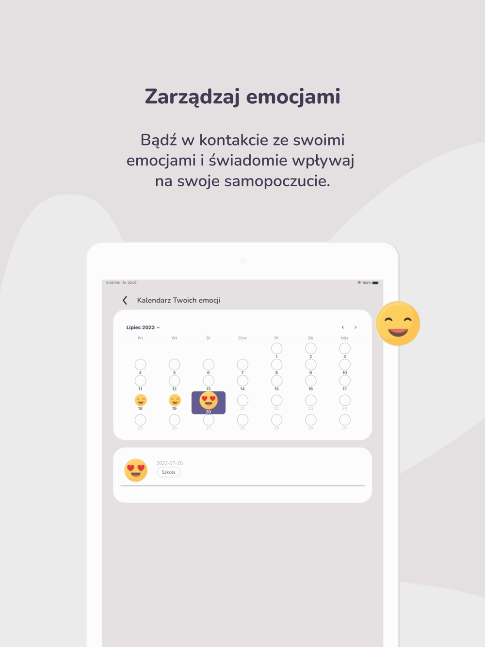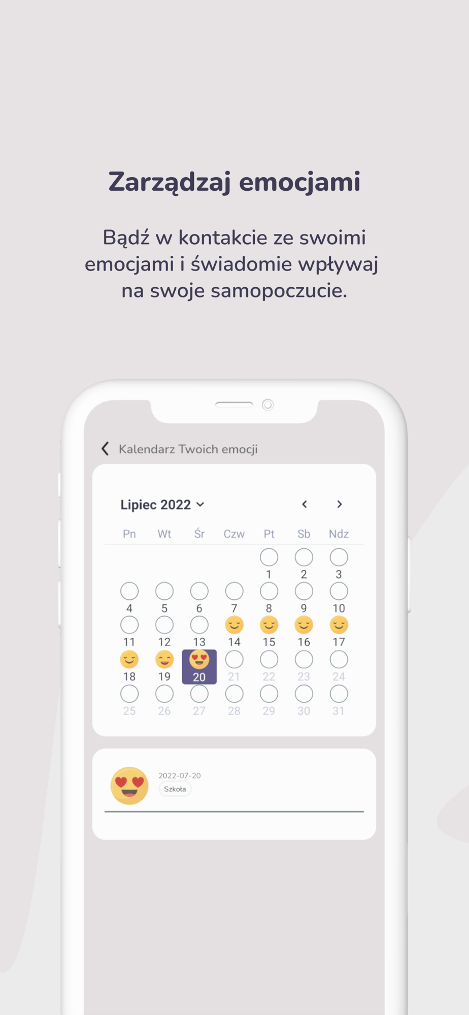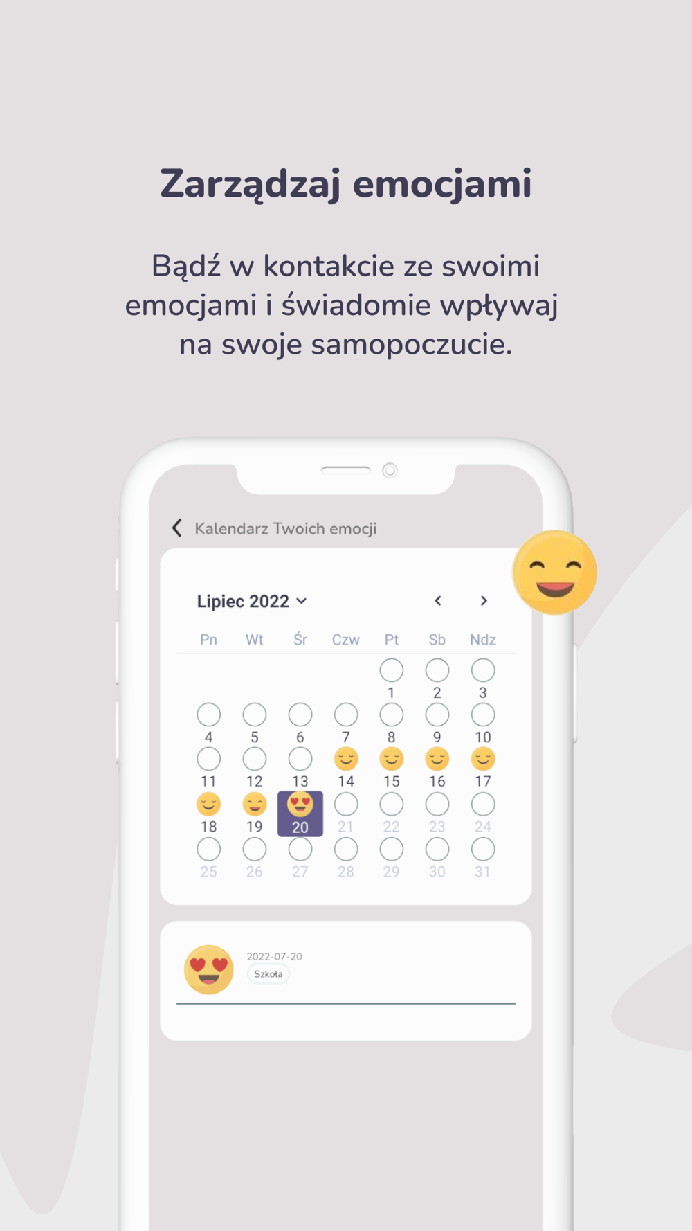 Z naszą aplikacją zwiększysz zadowolenie z życia, dzięki codziennym, dobrym praktykom i specjalnym funkcjonalnościom, takim jak praktyka wdzięczności, dziennik emocji, czy przerwa na oddech. Nauczysz się zarządzać emocjami i lepiej je rozumieć, a także rozwiniesz siebie, dzięki części rozwojowej, w której znajdziesz treści niebędące medytacjami, ale również wspierające zmianę nawyków.