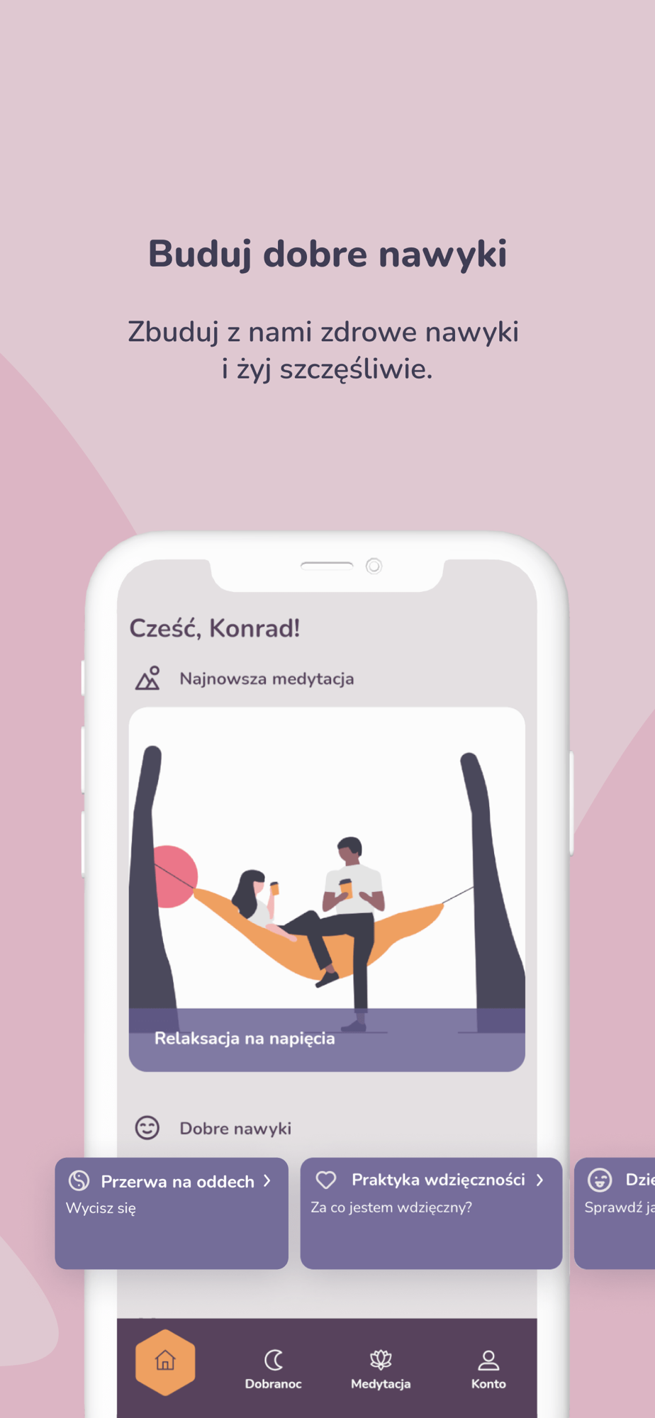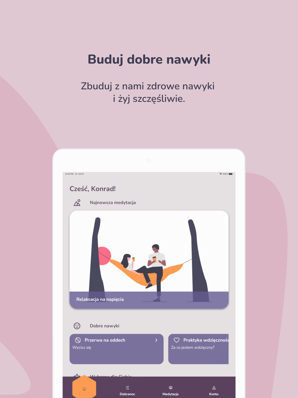 Medystacja to aplikacja mobilna, która ma za zadanie wprowadzić Cię w świat uważności, nauczyć medytacji, ale także wesprzeć w rozwoju i budowaniu zdrowych, dobrych dla Ciebie nawyków.