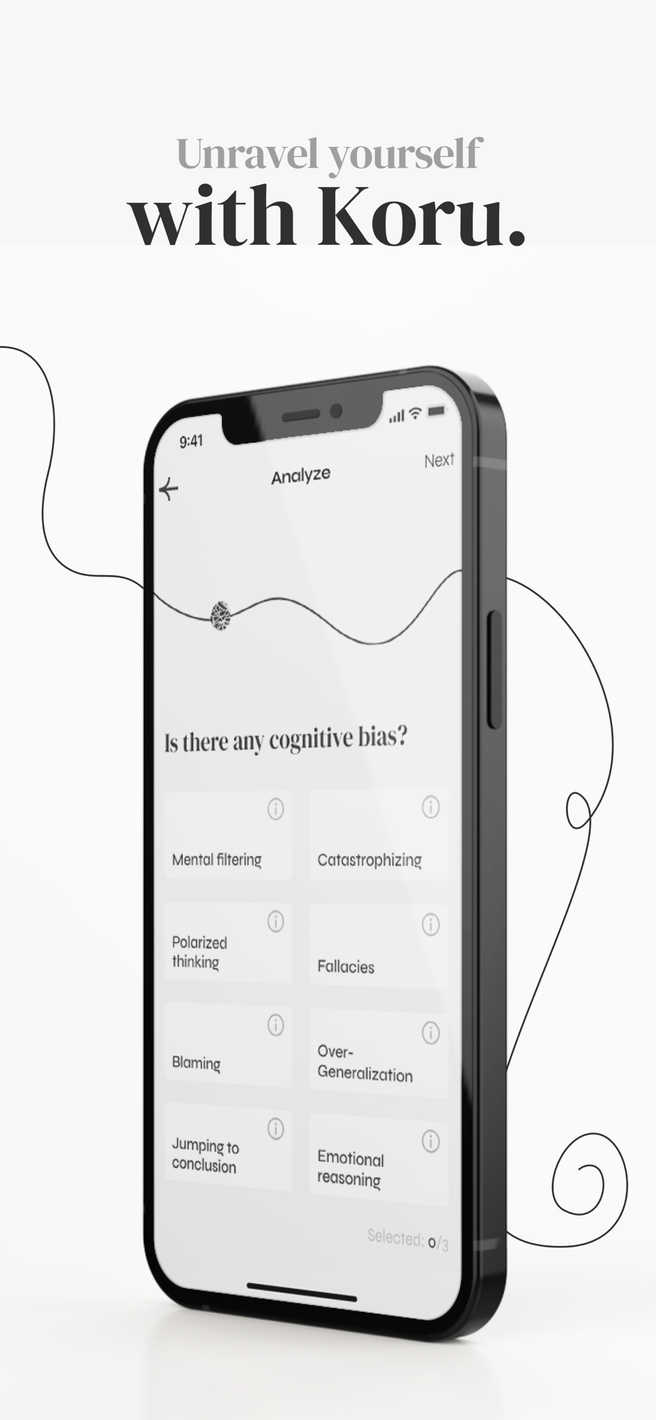 Koru helps you along this path, analyzing what your intrusive thoughts are, and initializing their resolution. You're not alone. Unravel yourself with Koru.