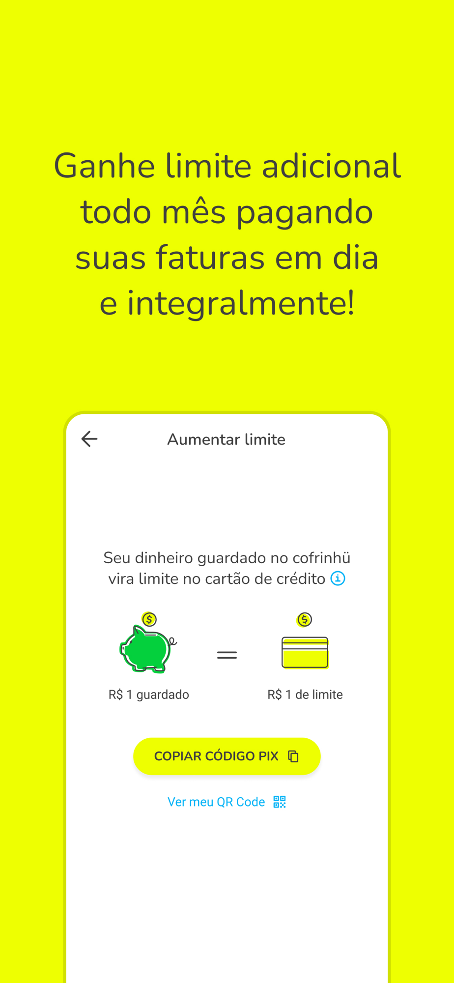 - Invista dinheiro no cofrinhü e garanta o mesmo valor em limite no cartão de crédito