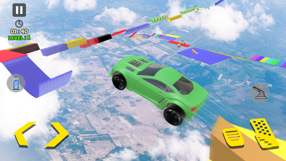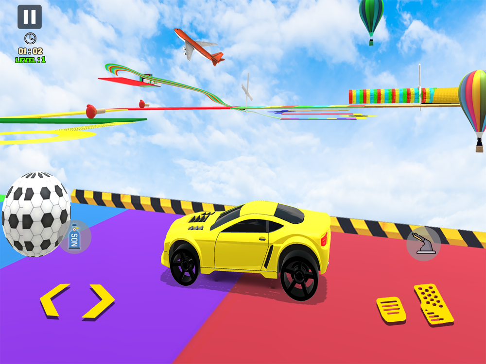 Sky Stunt Car 3d mega ramp has fulfilled with many features:
