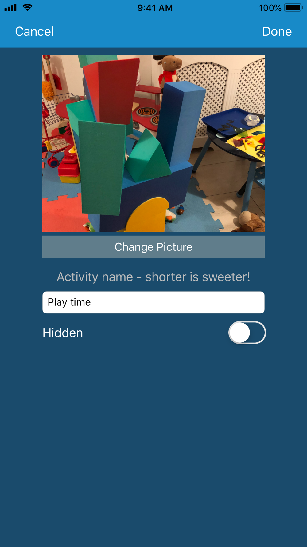 To aid with understanding, activities can optionally read aloud their name when tapped and be grouped in custom categories.