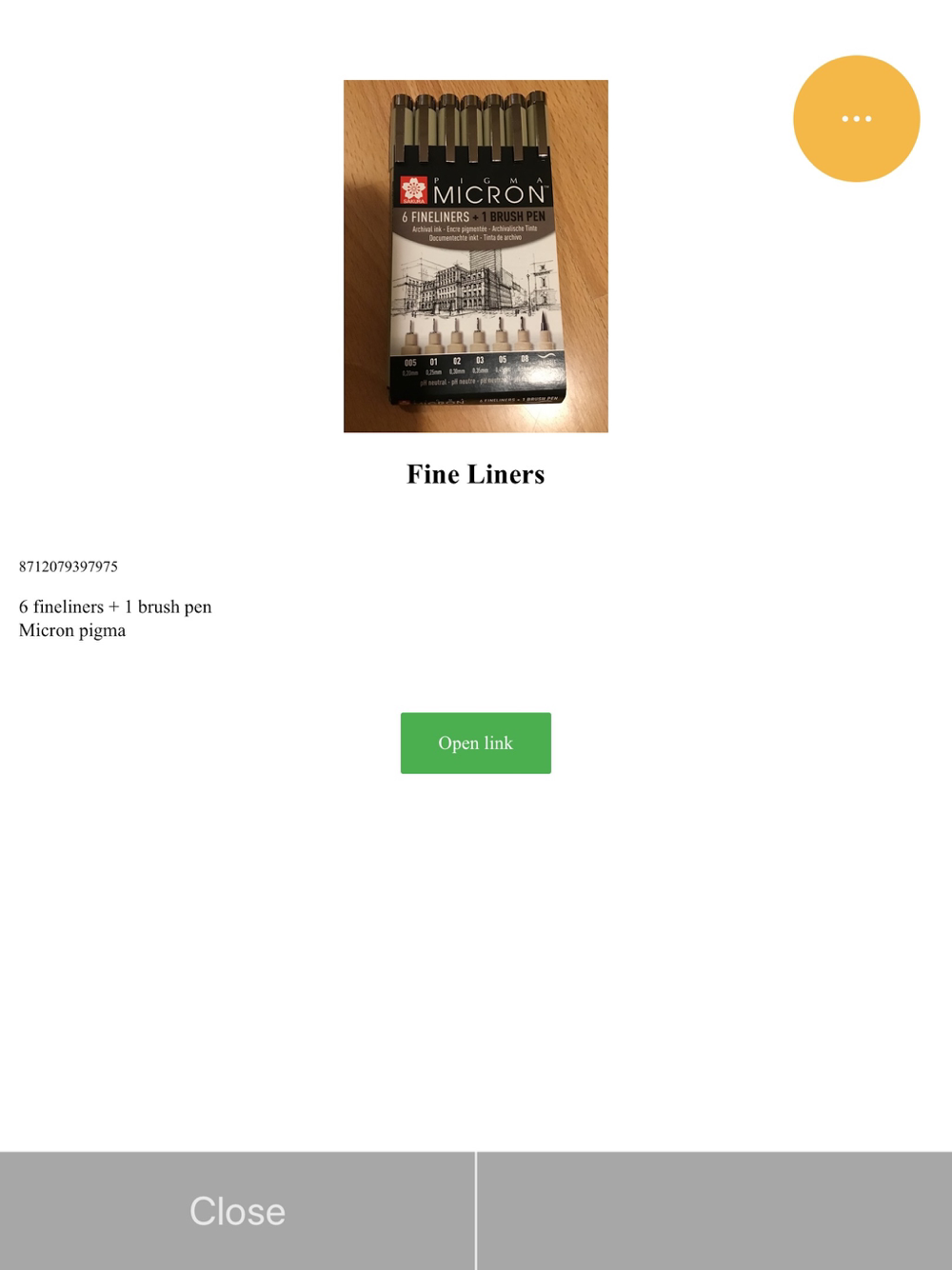 When scanning barcodes the name of the item with the corresponding barcode will appear directly on the scanner screen with options to open the item details or visit the web page for the item.