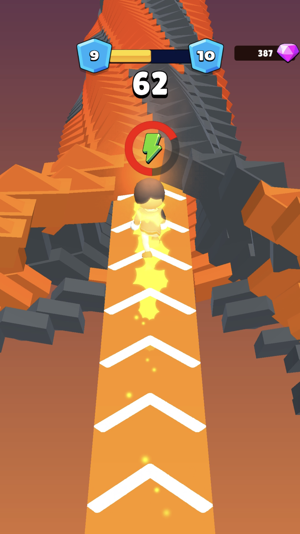 Crash colorful platforms & Avoid black segments. But even black segmants can be destroyed when you run like a fire!