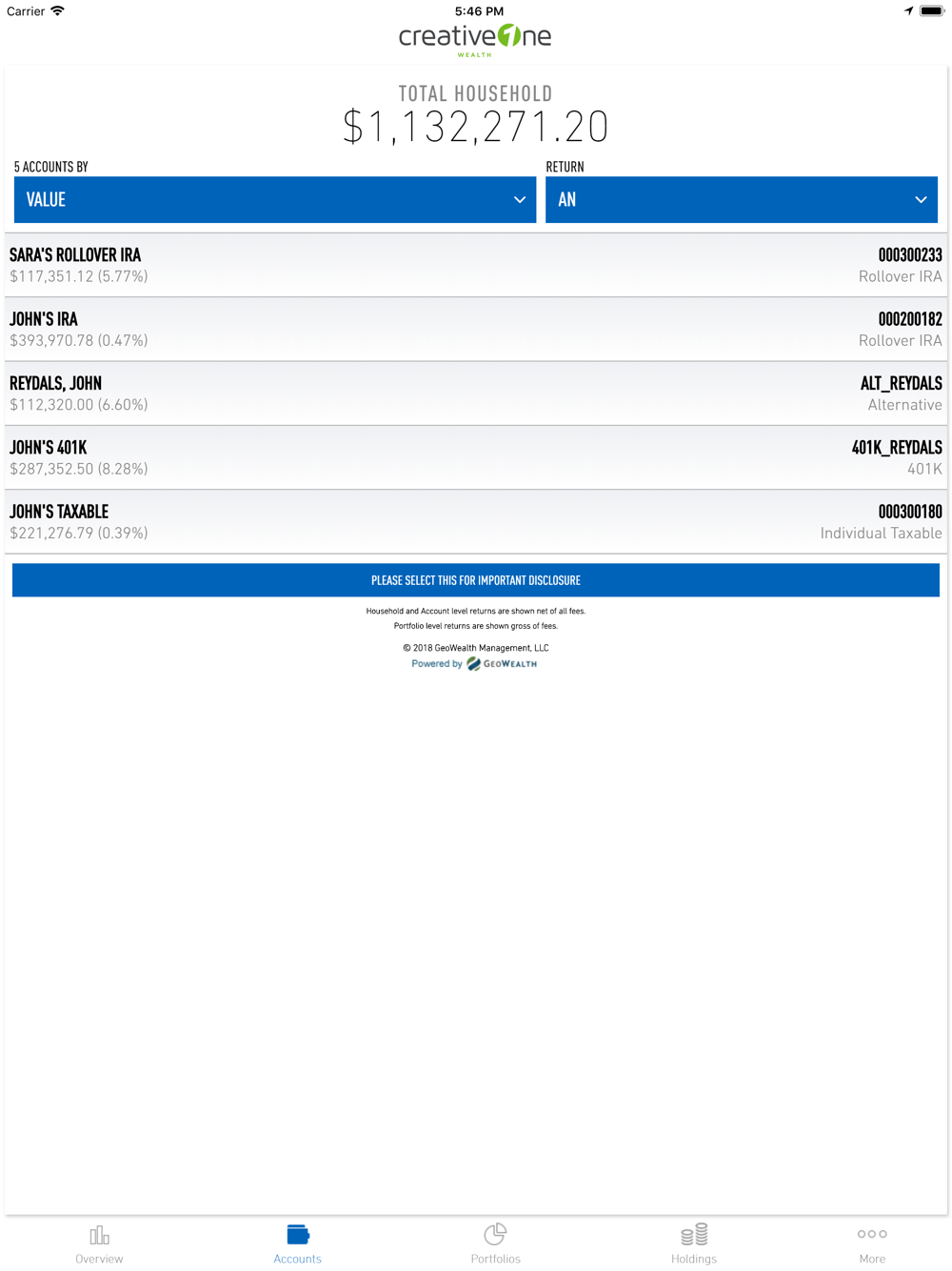 CreativeOne Wealth’s app provides greater visibility into both clients' overall financial picture and CreativeOne Wealth’s wealth advisory services.
