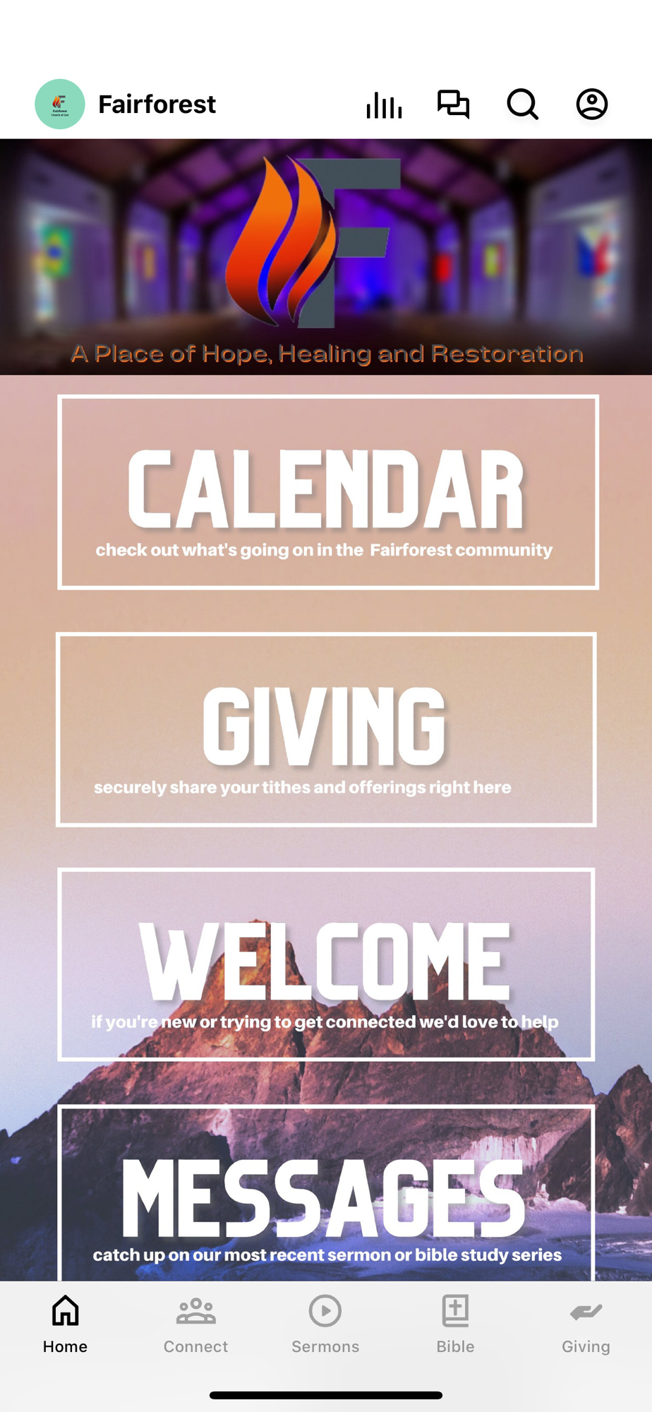 Find information, schedules, connection points and media content and live streaming from Fairforest Church of God all from this app.