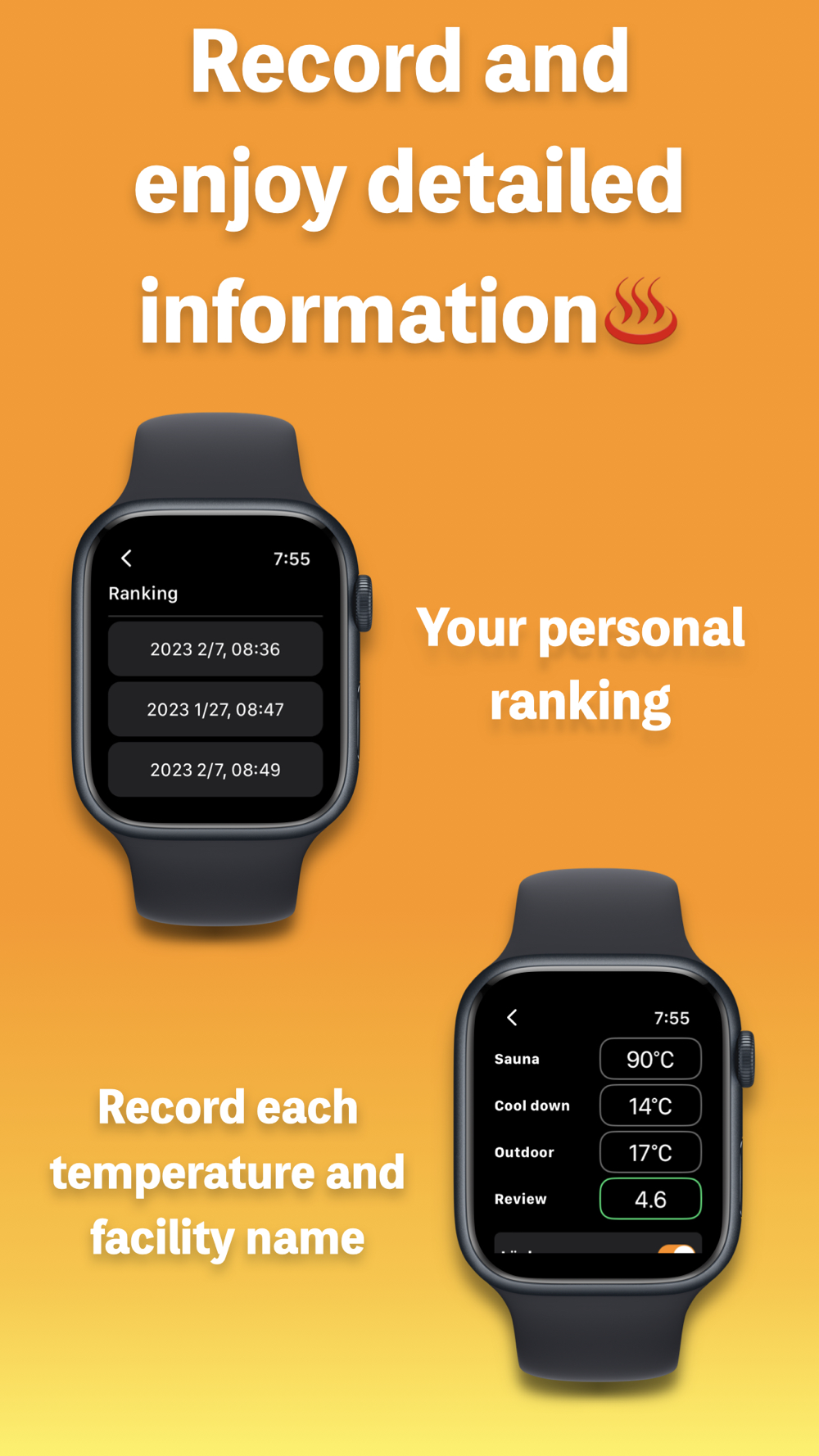 The sauna record is used to record the time and heart rate, and finally, the temperature of the sauna room, the temperature of the water bath, the temperature of the outside air, and whether there is a wax or aufguss, etc. are entered.