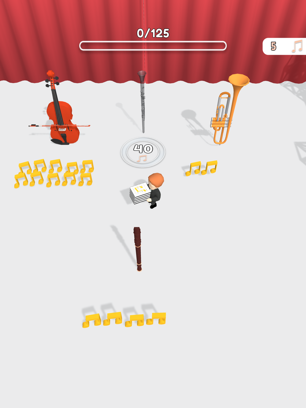 Unlock the musical instruments with notes and catch the best rhythm. Make your audience clap their hands and be sure to collect all the claps!