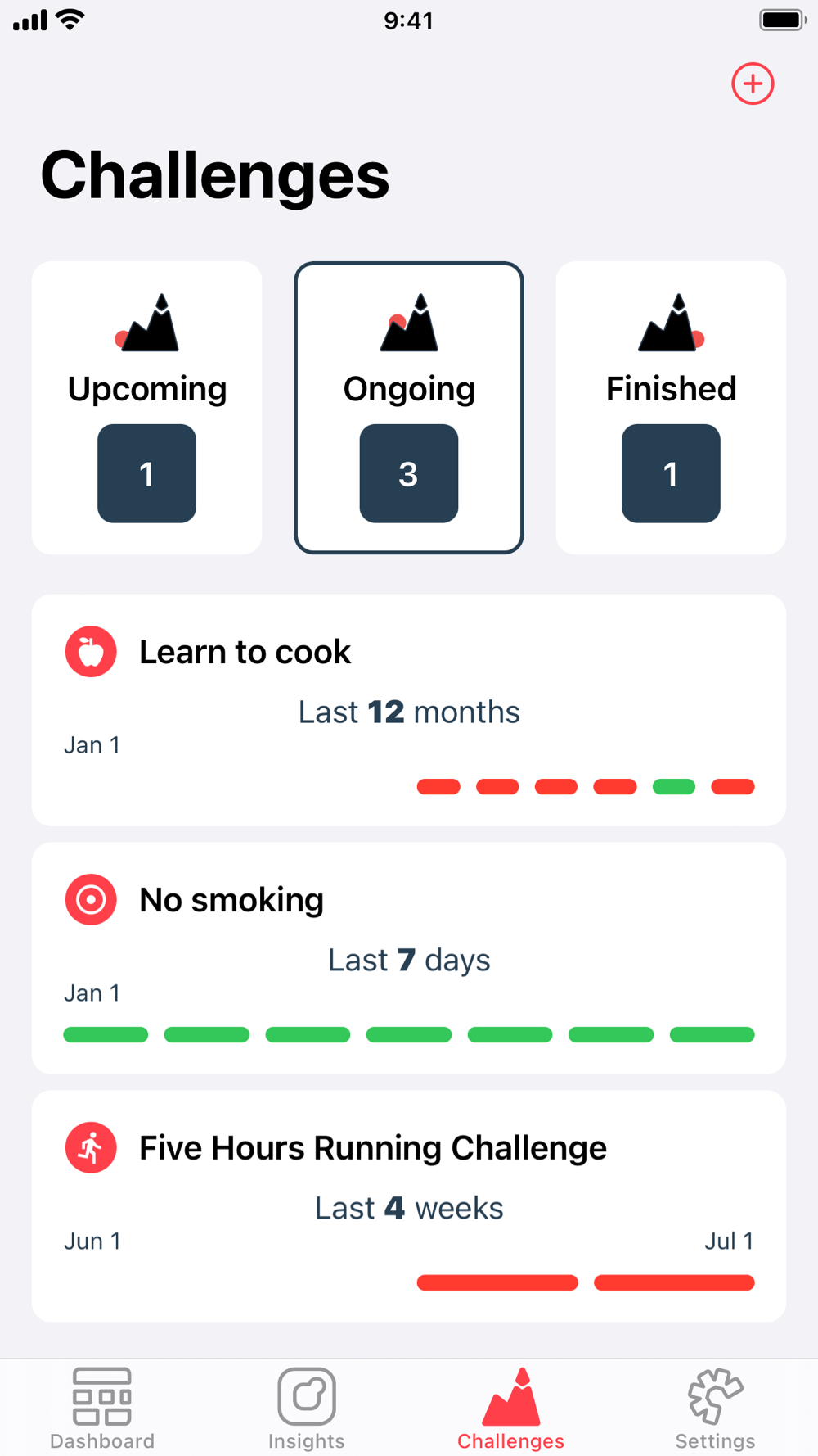 You want to visualize your goals - we got you! With Awarly you can define challenges based on your actions. The app then shows you your daily, weekly, monthly or yearly goals.