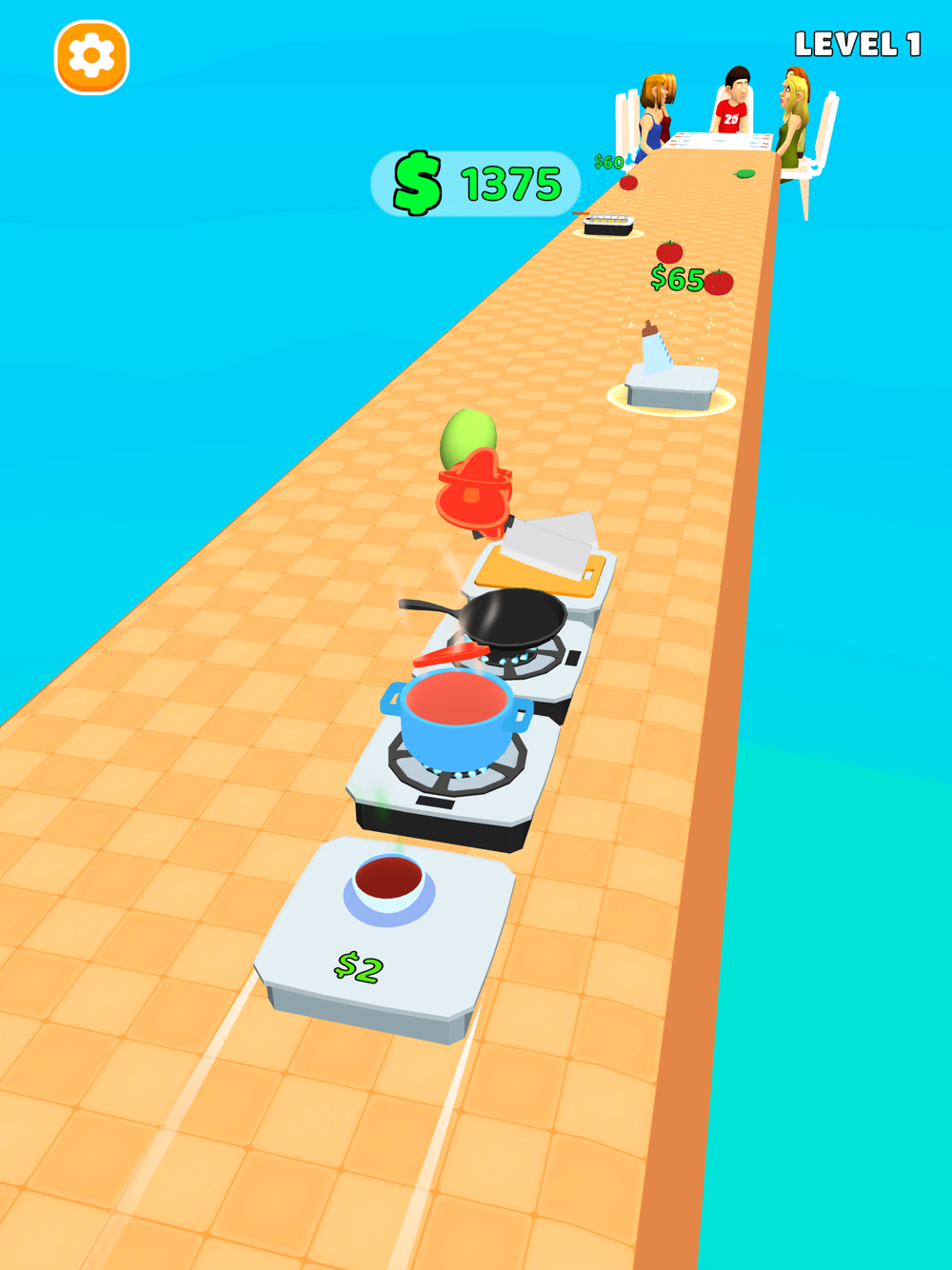 Buy the kitchen tools. Collect the foods. Chop, grate, fry and cook the best food.
