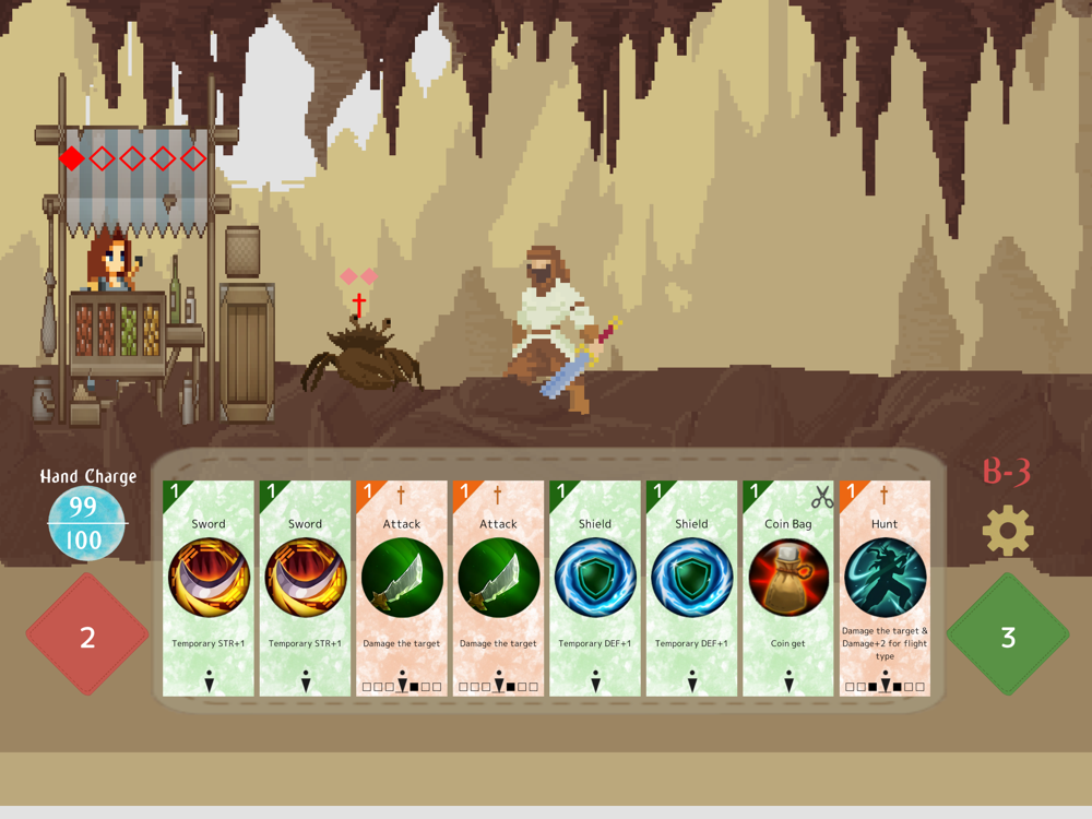 Walk through the underground labyrinth while strengthening your stats and decks.