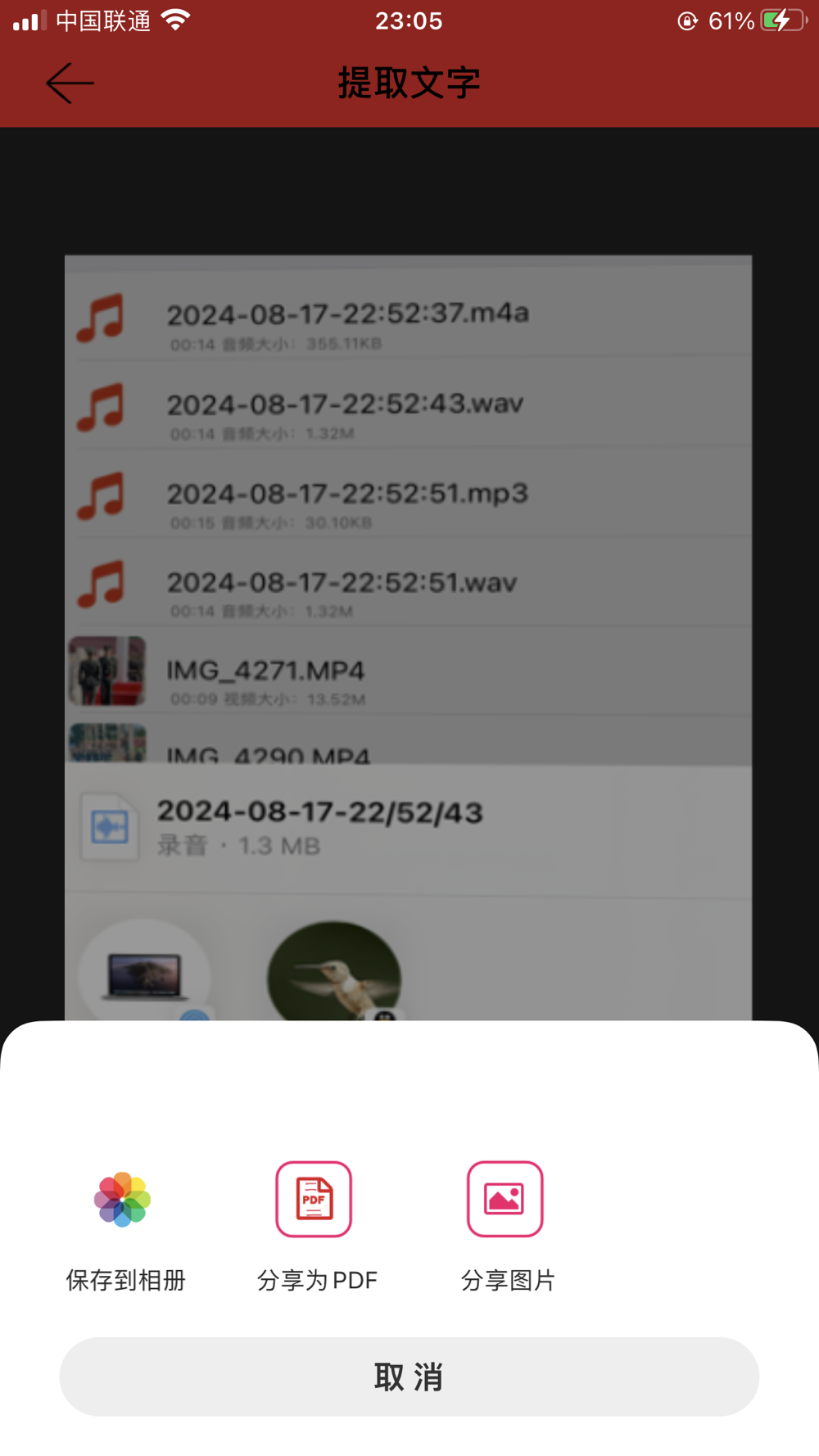 这是一款操作简单简而美的多功能APP,可以提取视频里的音频,多段音频拼接,录音转换文字,视频转m4a,视频转wav,视频转mp3,m4a转wav,m4a转MP3,wav转 MP3,录音识别文字,图片提取文字,扫描图片,录音转文字。
