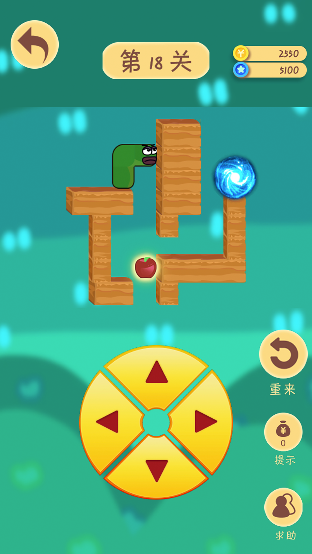 益智模式: 贪吃的苹果蛇一样的玩法,也是这次主推,抖音上已经爆火了,规则很简单,想尽办法,让蛇到达蓝色漩涡这个终点即可!