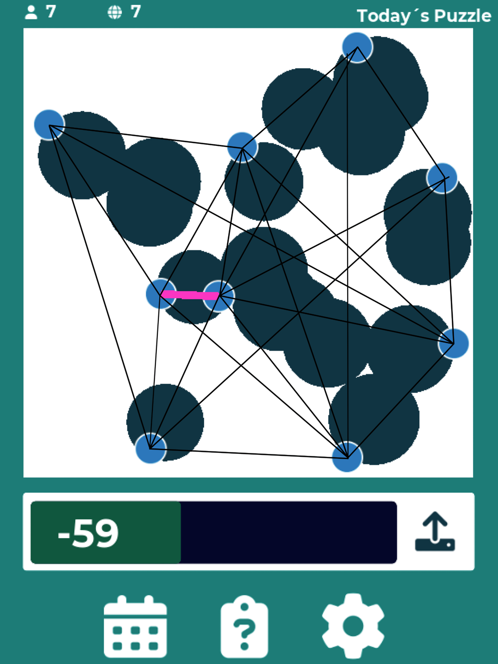 Separate the particles from each other as much as possible. The shortest distance will be indicated by a line. The higher the better. A positive score means you're above par (better than our Artificial Intelligence). But try to beat the other player's scores, too!