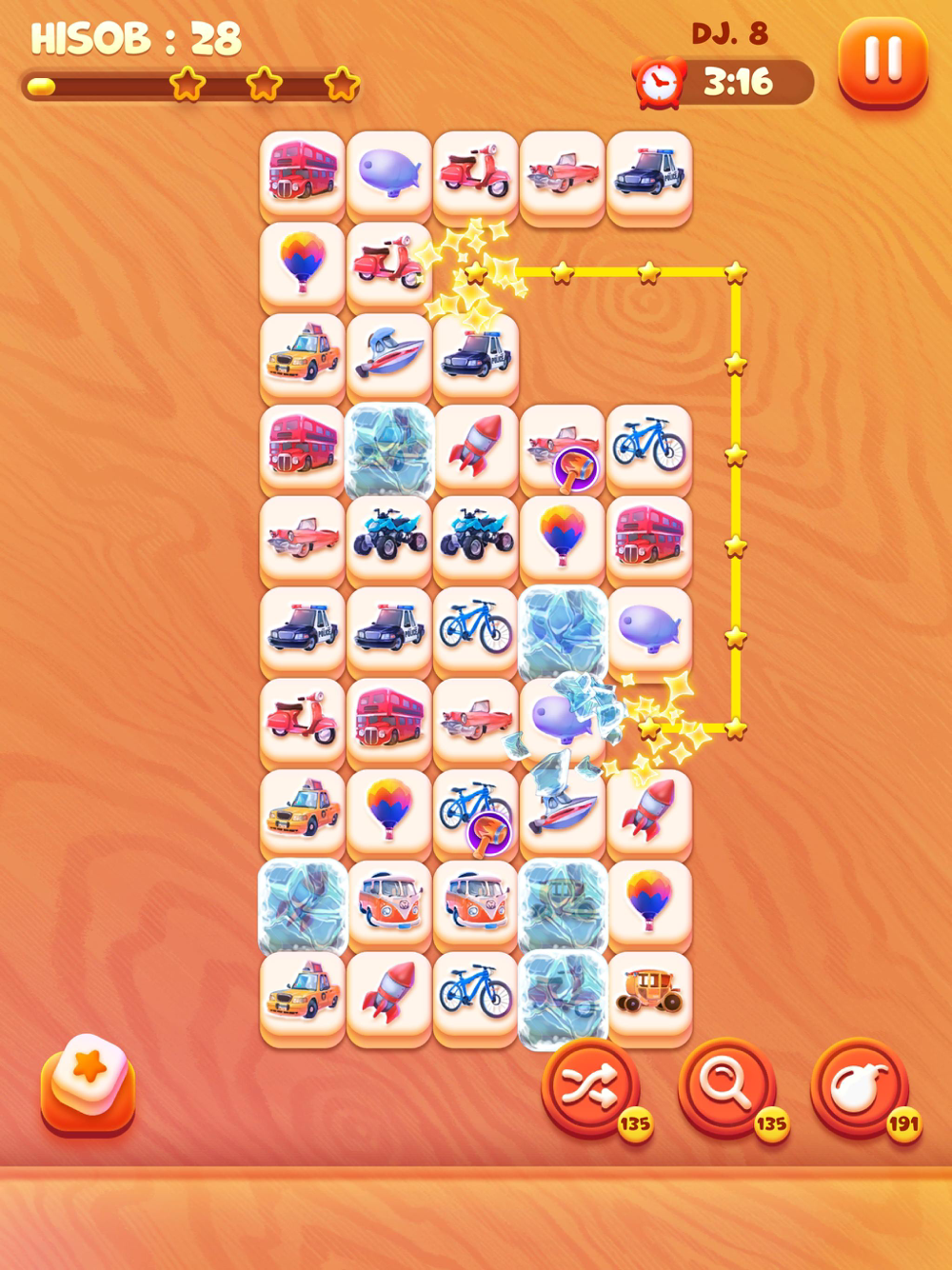 - Bir xil tasvirli plitkalarni jufti bilan ulab ularni o'yin maydonidan olib tashlang.