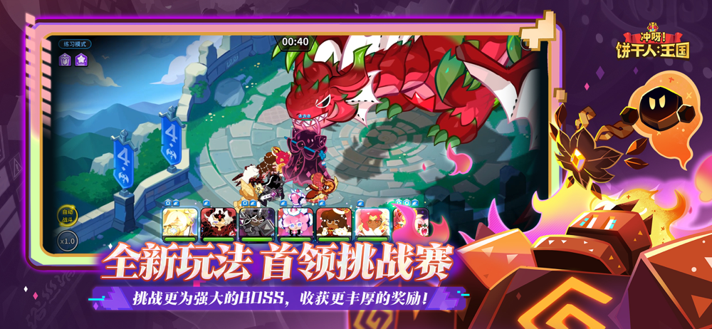 《冲呀!饼干人:王国》是一款结合模拟经营玩法元素的卡牌战斗手游。故事诞生在美味的面包大陆,饼干们逃离了魔女的烤箱,在旅程中相遇成为伙伴,一起携手重建曾经富饶酥脆的饼干王国。