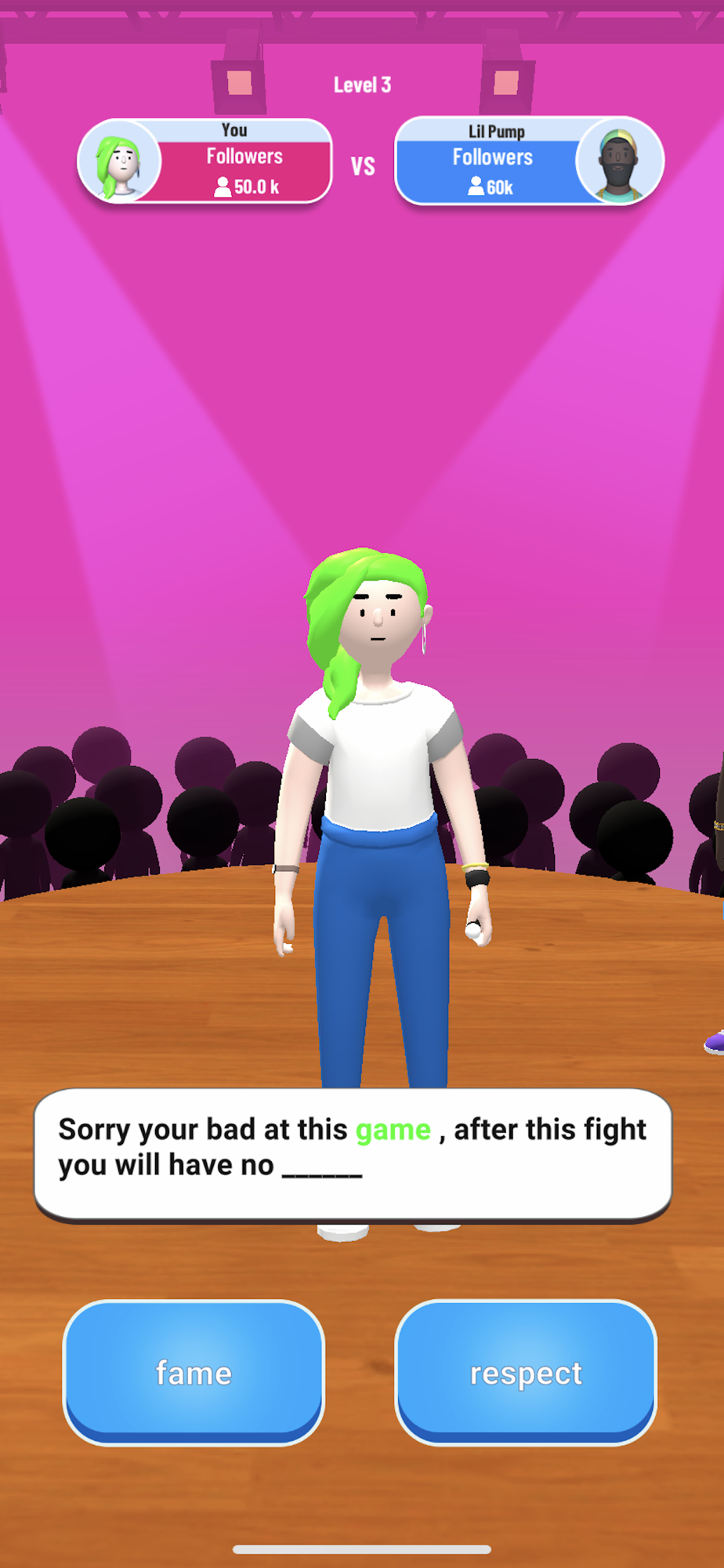 Battle Rap Superstar is a rap battle game where your aim is to keep the rhyme flow going and beat your opponents. Play as an aspiring rap artist and battle against other rappers. Level up your hip hop game with some sweet rhymes.