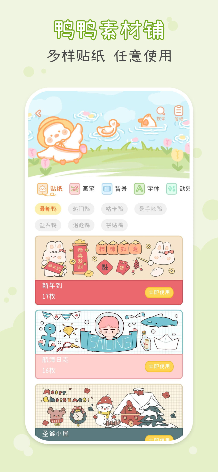 1、爱鸭手帐软件是一款治愈且可爱的软件,超萌可爱的手帐鸭,陪你写手帐。你可以在温馨的氛围中自由的拼贴与记录。