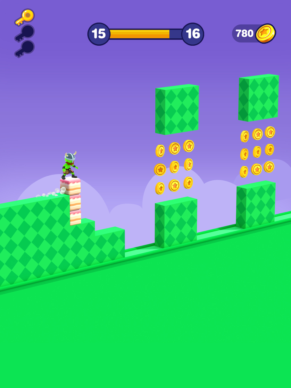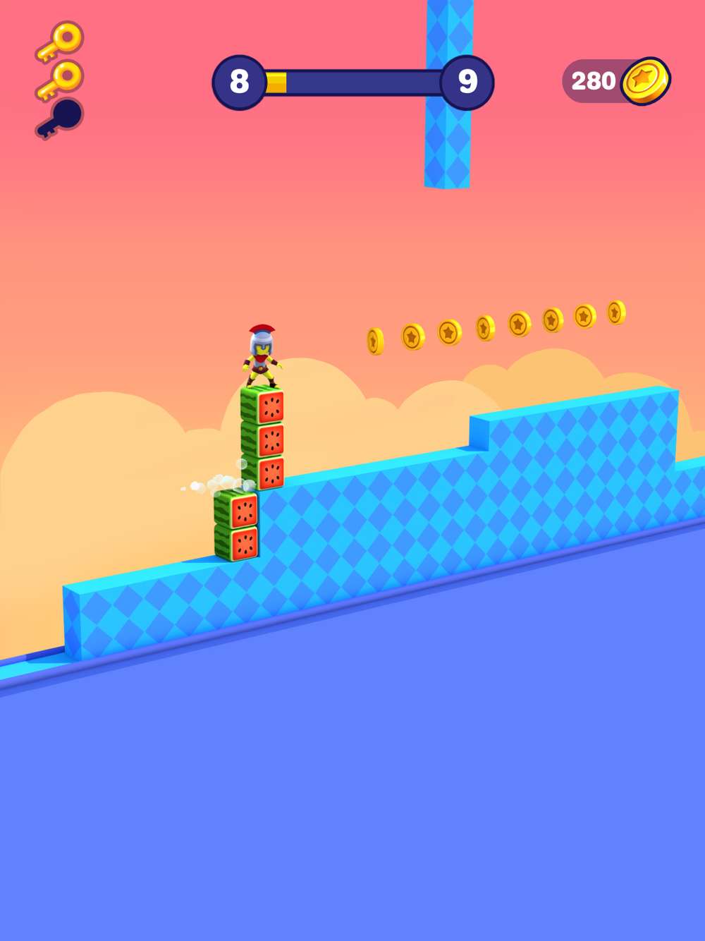 Stack blocks to build your tower and pass all the obstacles. Do your best to collect coins and keys to win big prizes. But be careful not to fall off the cliff!