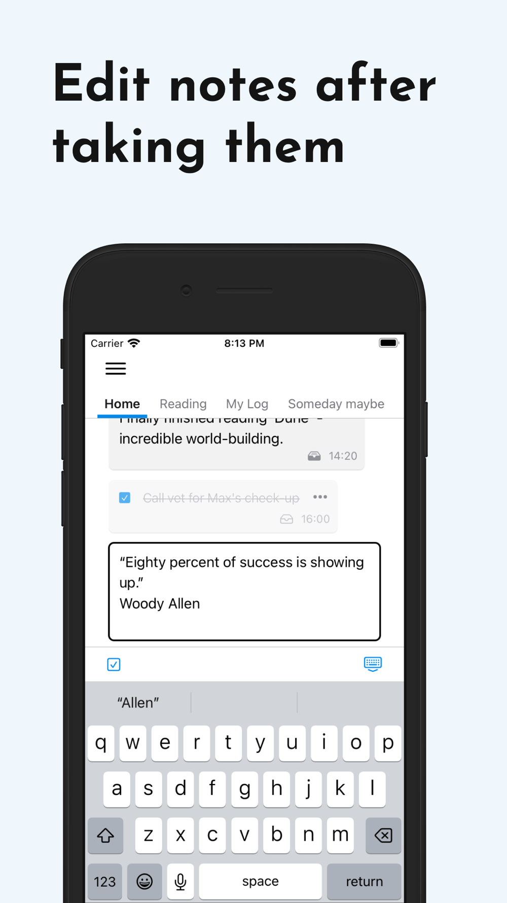 Do you text yourself to remember things? Capture ideas with Qept! As simple as messaging, yet powerful as a full-fledged note app. Download for free and turn your thoughts into actions.