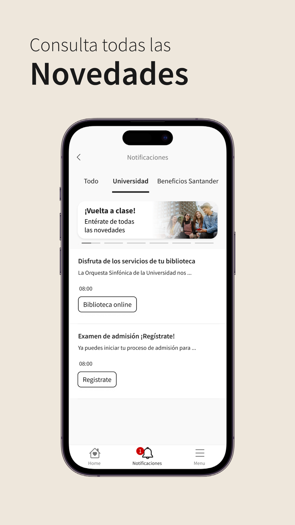 3.Además, tienes la opción de suscribirte a "Beneficios Santander", lo cual te permite acceder a becas, bolsas de trabajo, programas de emprendimiento, descuentos y más.