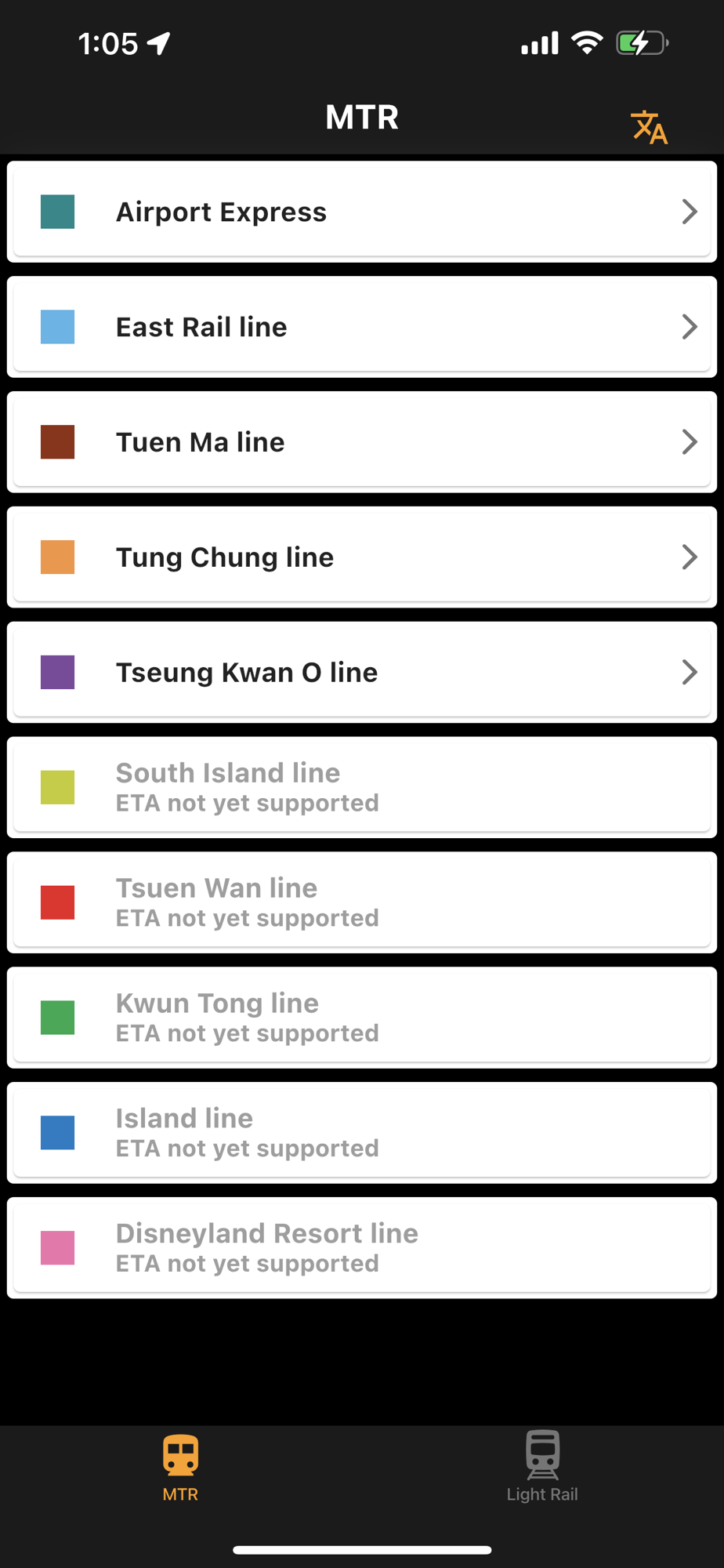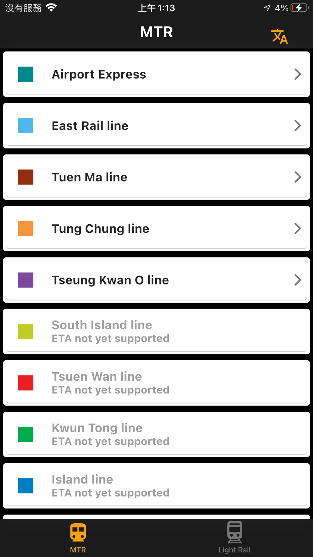 RailTimer providing the MTR and Light Rail Real-time train information.