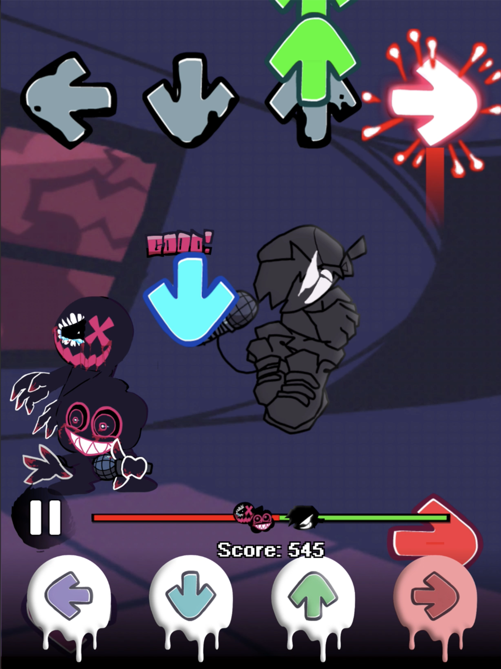 "Evil Night Music" is a fun new rhythm game set in a spooky atmosphere. The player wakes up in an unknown location! help him confront his evil counterpart in a series of high-effort covers.