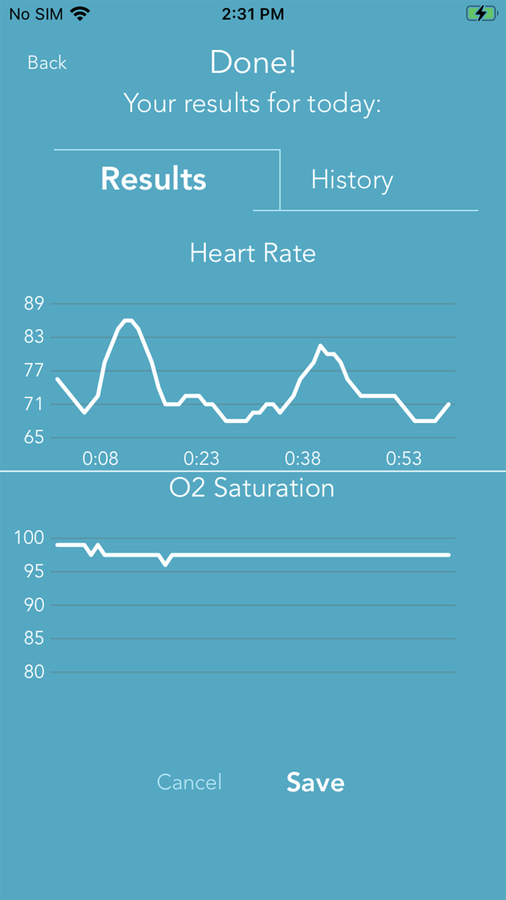 iHeart Record allows you to record heart rate and oxygen saturation over a fixed duration.