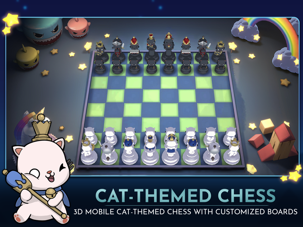 PurrChess is the first 3D mobile cat-themed chess with customized boards. These dangerously adorable felines are on a mission to capture kings and hearts. Command cats and try out different openings or defenses against opponents from all around the world.