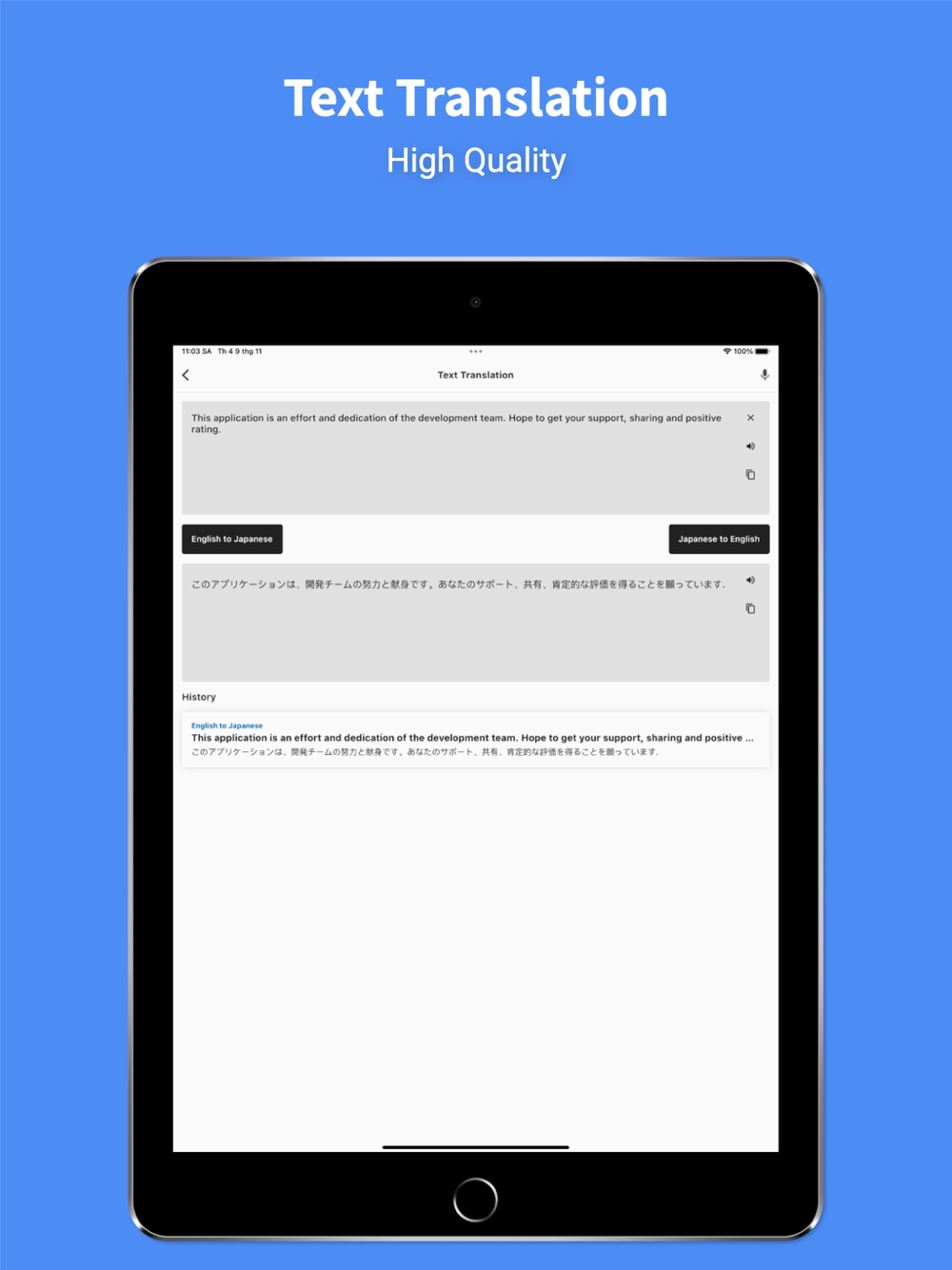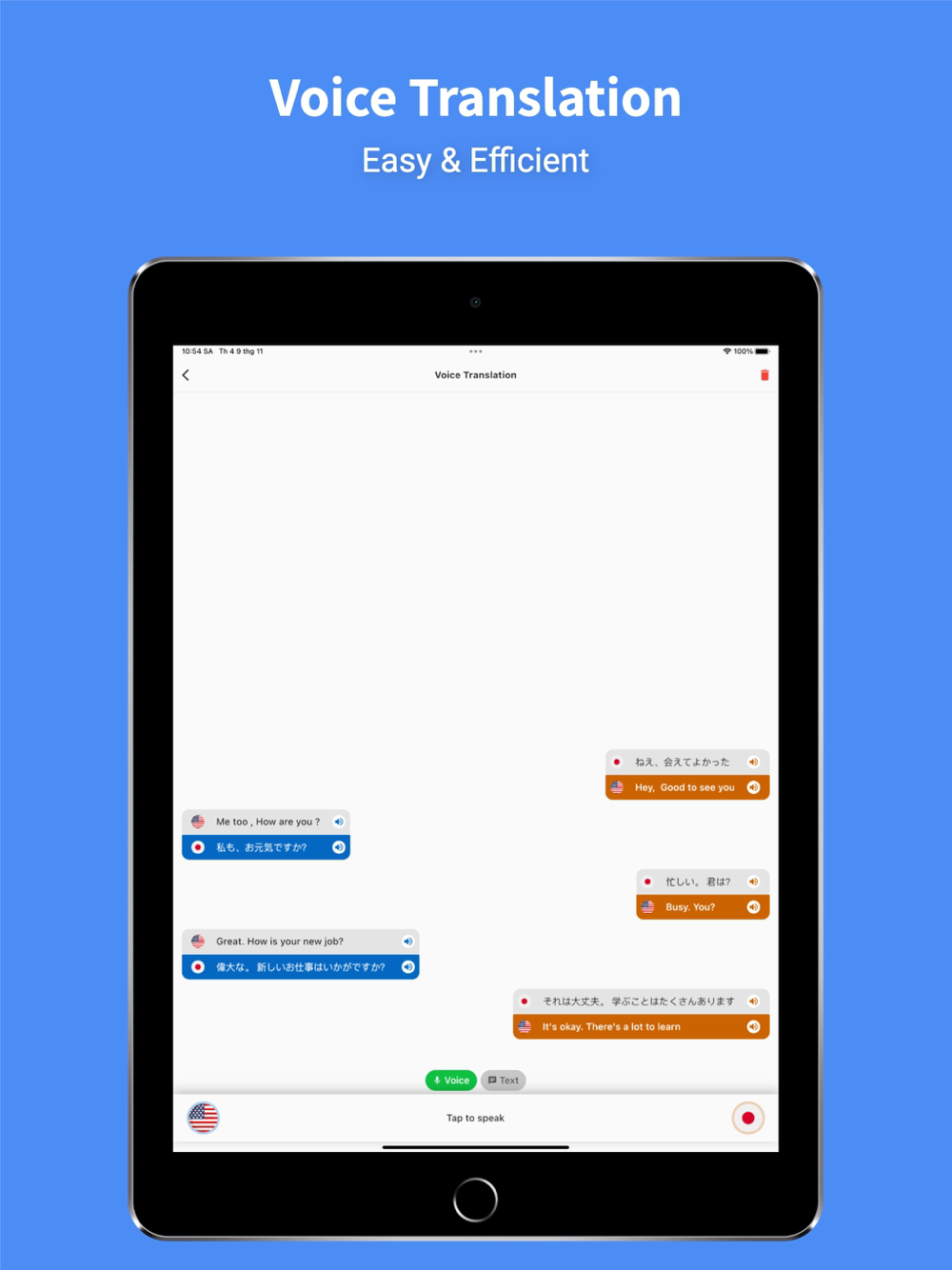Real-time English or japanese text translation for phrases and words, voice to text translation