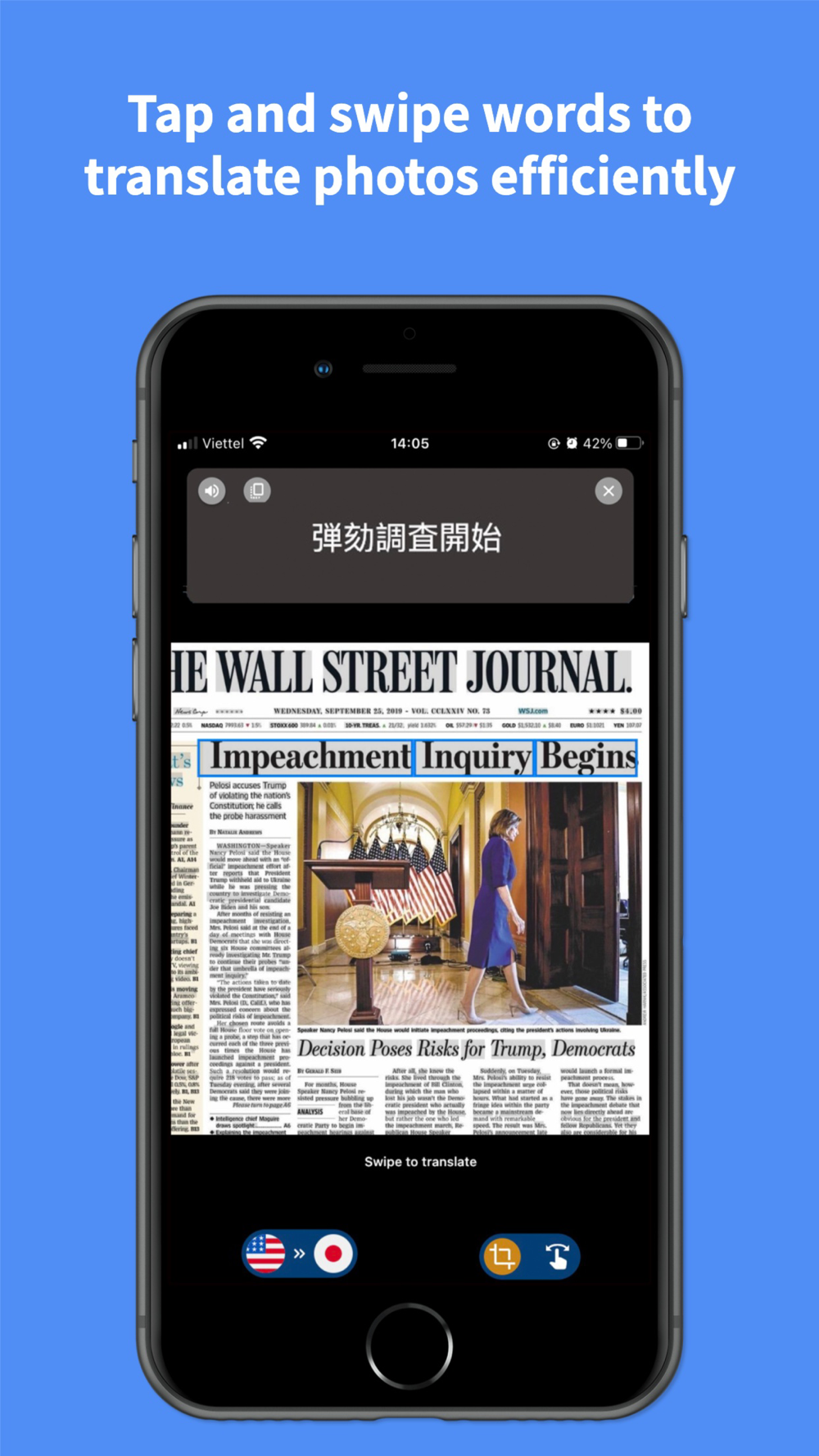 Automatically recognize and translate text in images by taking a photo and pressing a button, can touch a word to know its meaning or see all translated