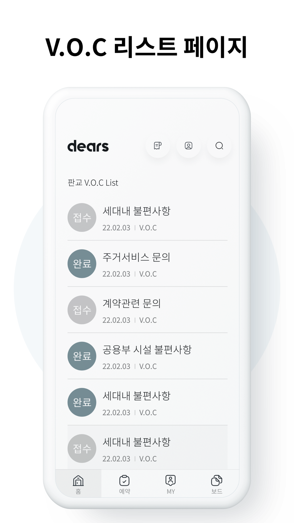 디어스 판교와 디어스 명동 ‘서던하일랜드’는 커뮤니티의 예약 및 시설 예약, 그리고 고객의 소리를 실시간으로 듣습니다.