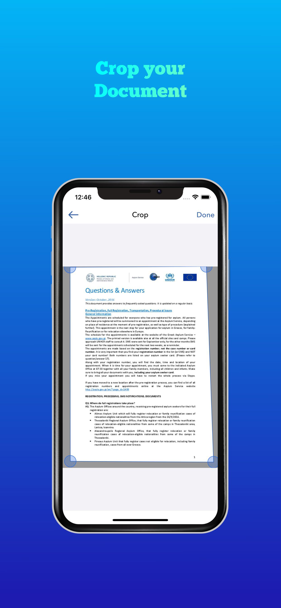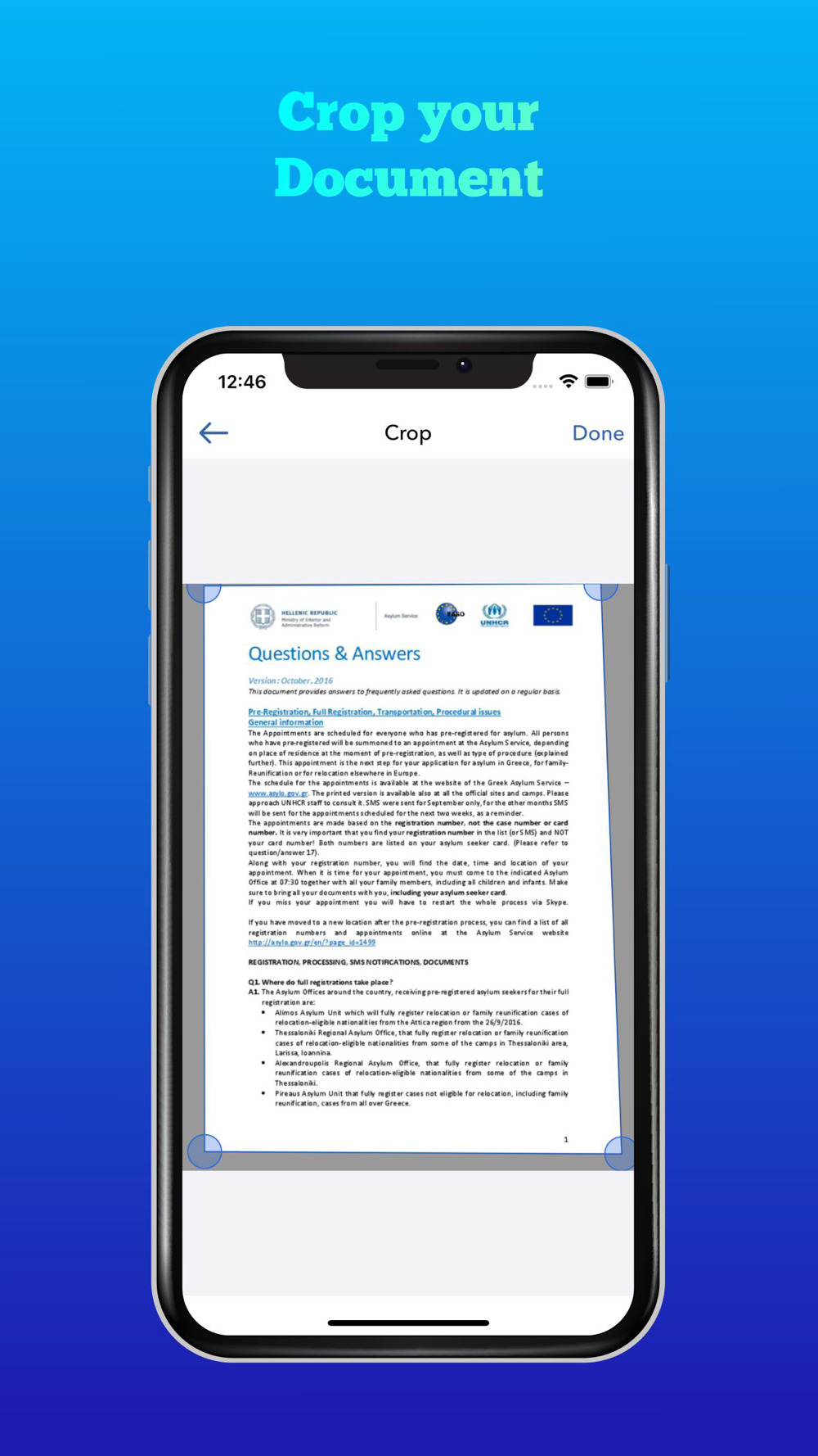 - The tools at the top allows users to create documents from photos.