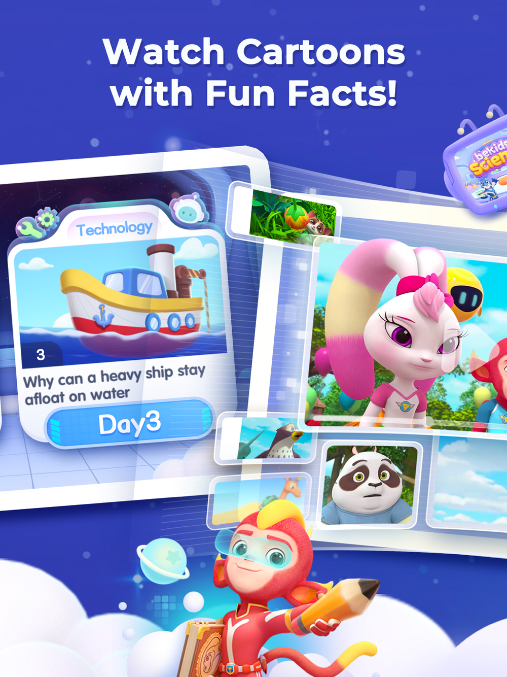 Jump into the world of STEM with bekids Science. Play kids games, watch cartoons, and meet lovable characters—all designed to nurture a love for science.