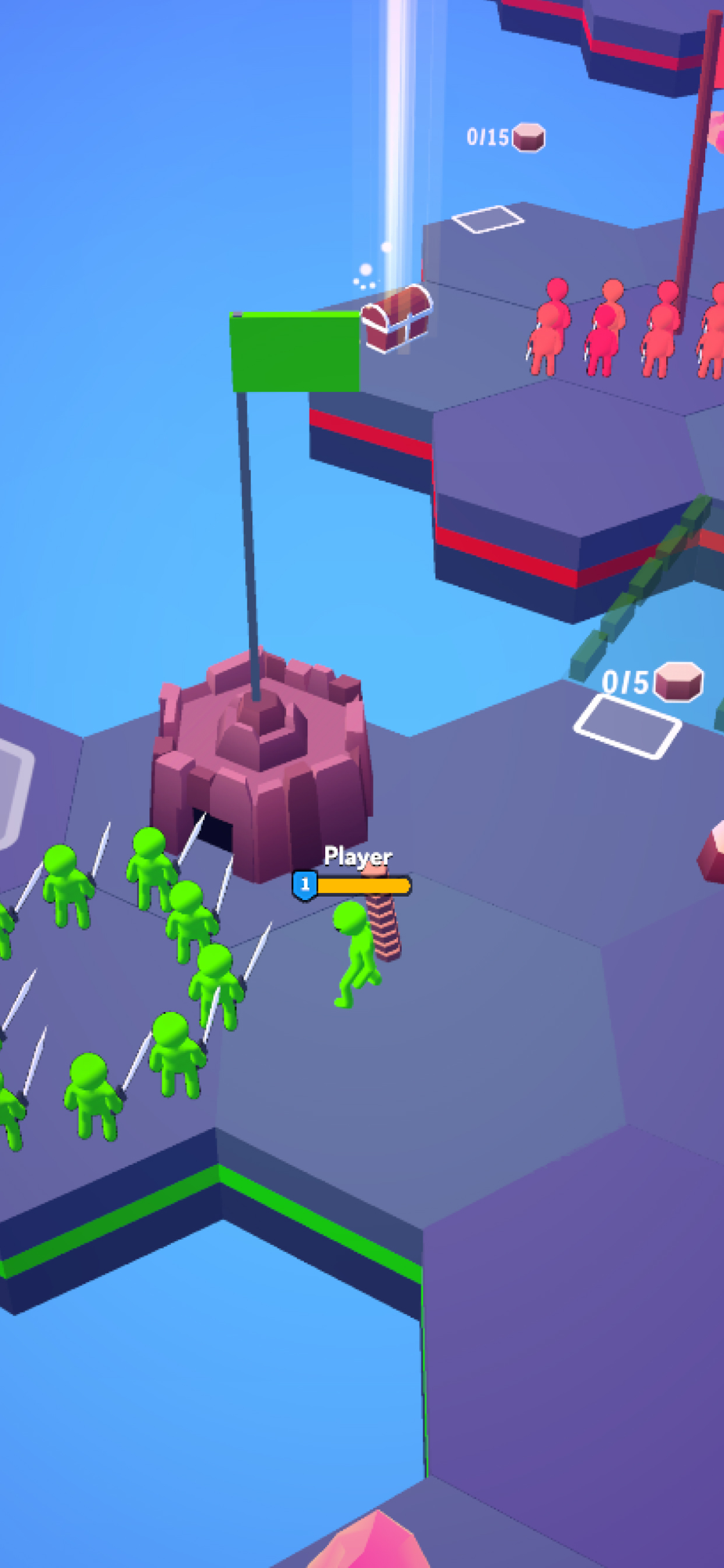 Raise your soldiers because you will be landing on other islands. Upgrade yourself to destroy the evil empire!
