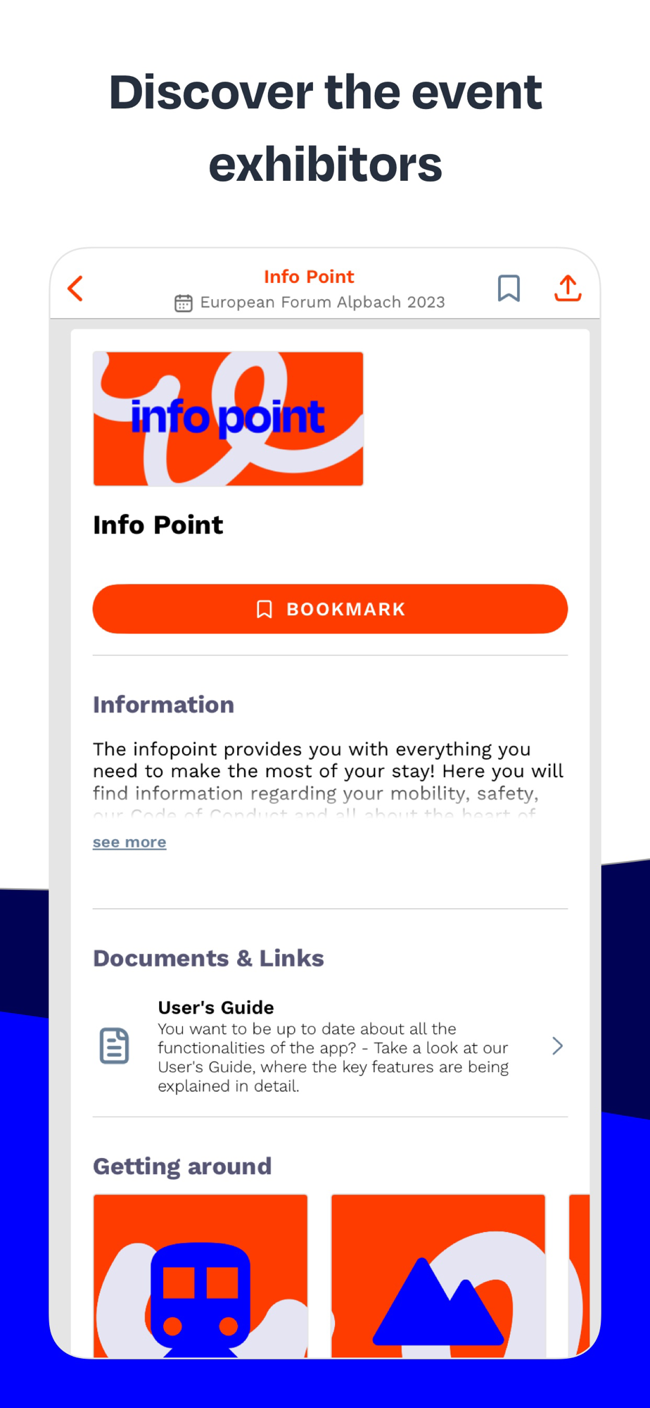 Organise your experience by adding your favorite sessions to your personal calender, get in touch with other participants and schedule meetings or exhange contact details.