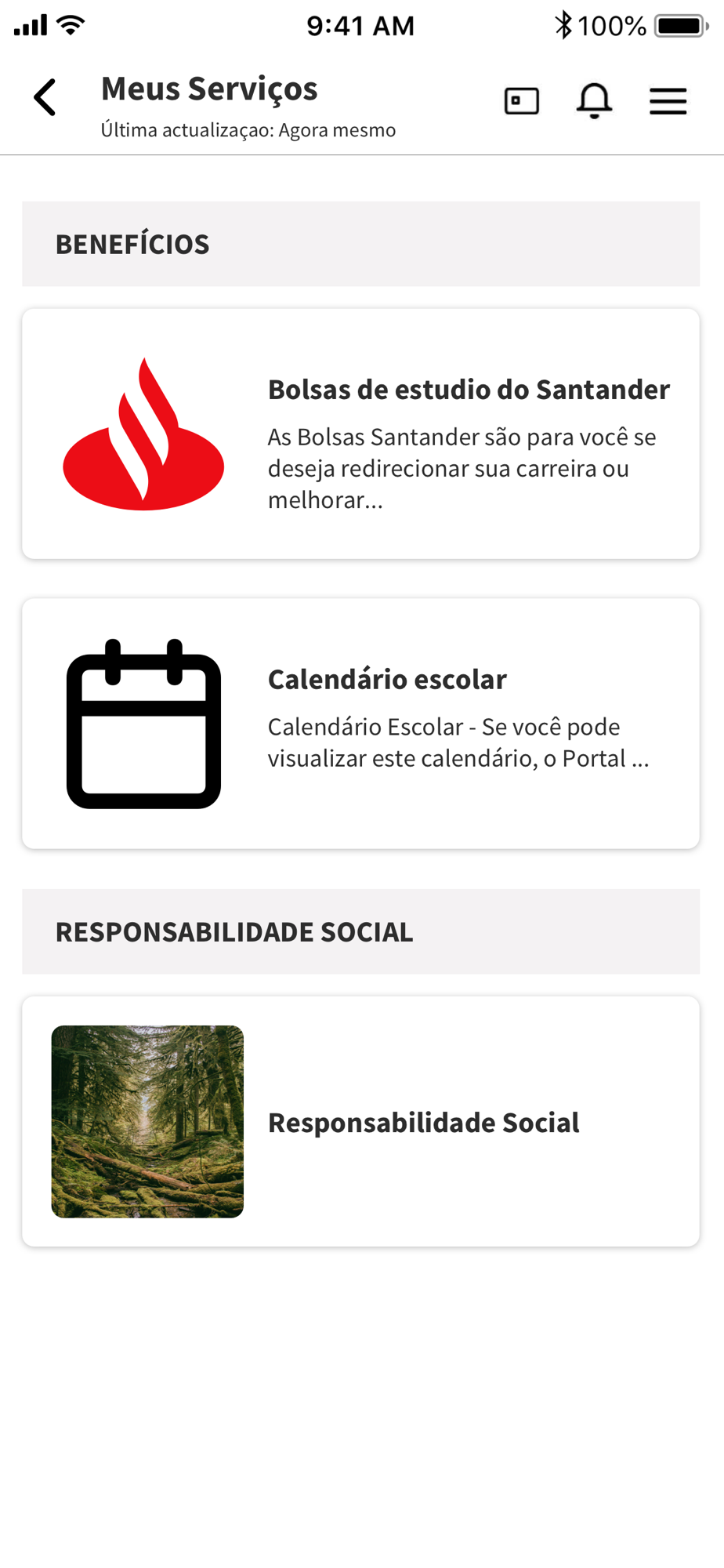 - Além disso, terá a opção de se inscrever nos “Benefícios Santander”, para acessar os seguintes serviços: