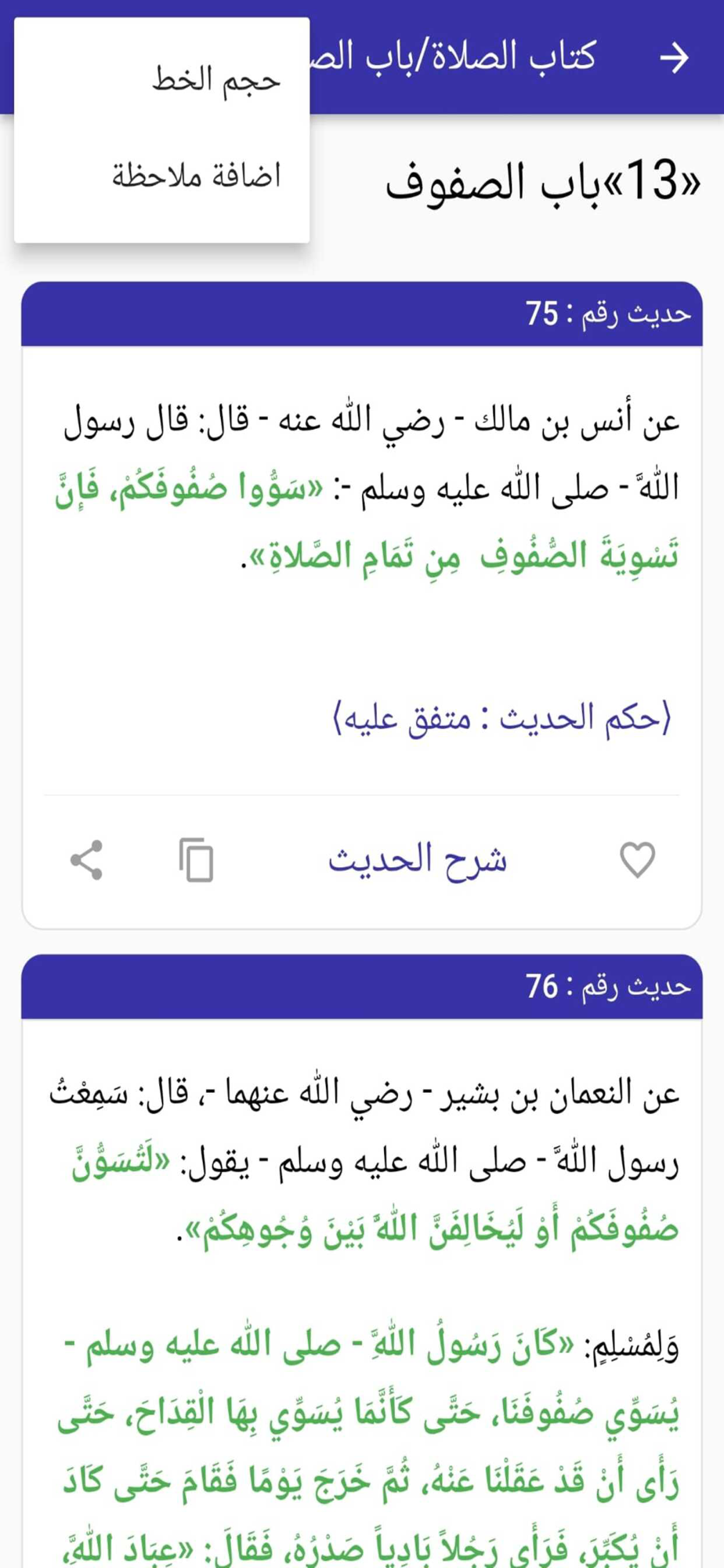 - اضافة الاحاديث او الابواب الى القائمة المفضلة