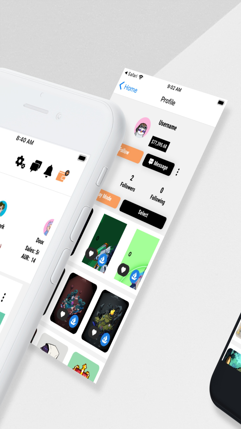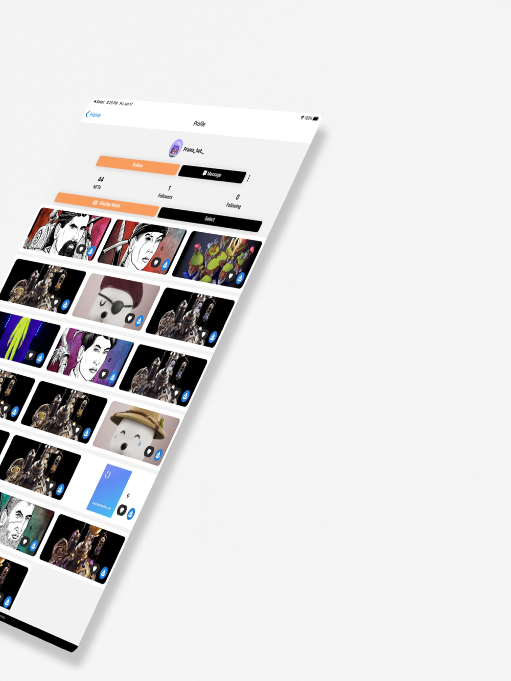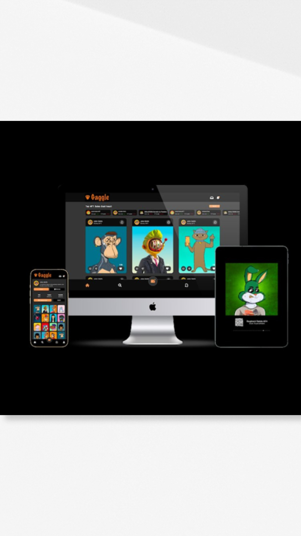 Gaggle links to your wallet and displays your collection beautifully on a feed. Or choose display mode which allows you to display your NFT collection full screen on a stunning slideshow.
