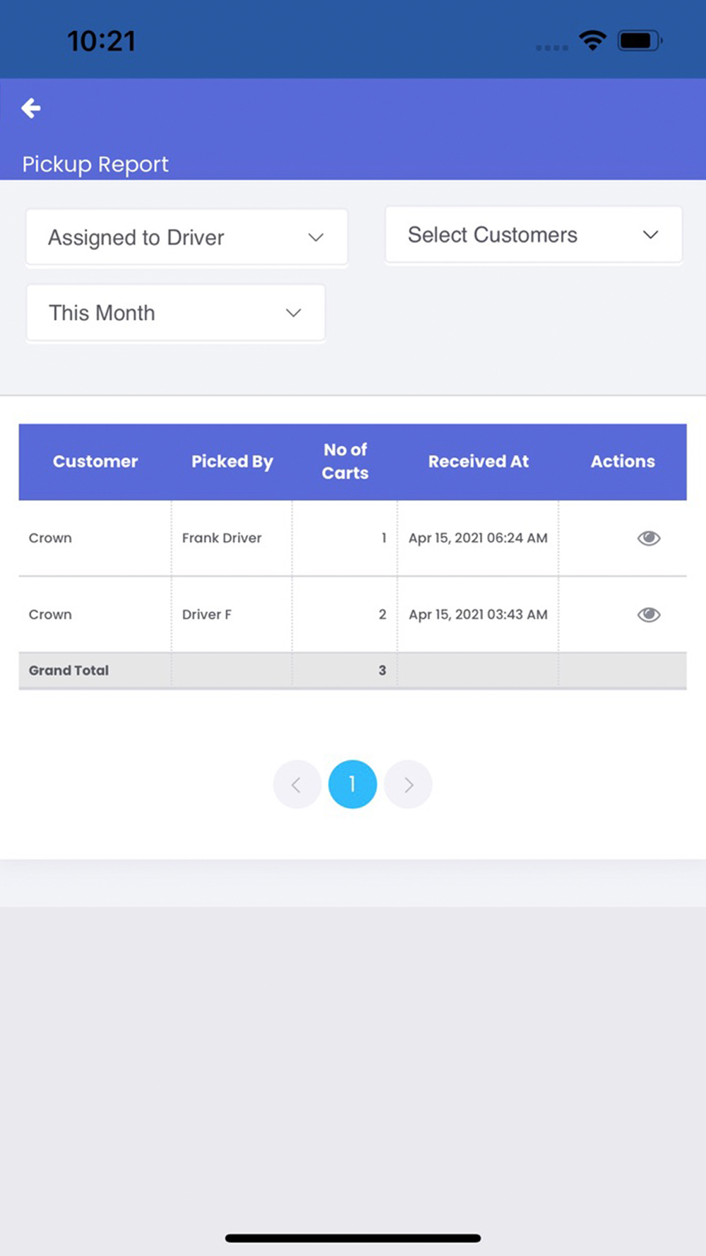 • Scan carts being picked up from the customer location. Laundry manager will immediately get an SMS as well as app notification with the number of carts being picked up from the customer location.