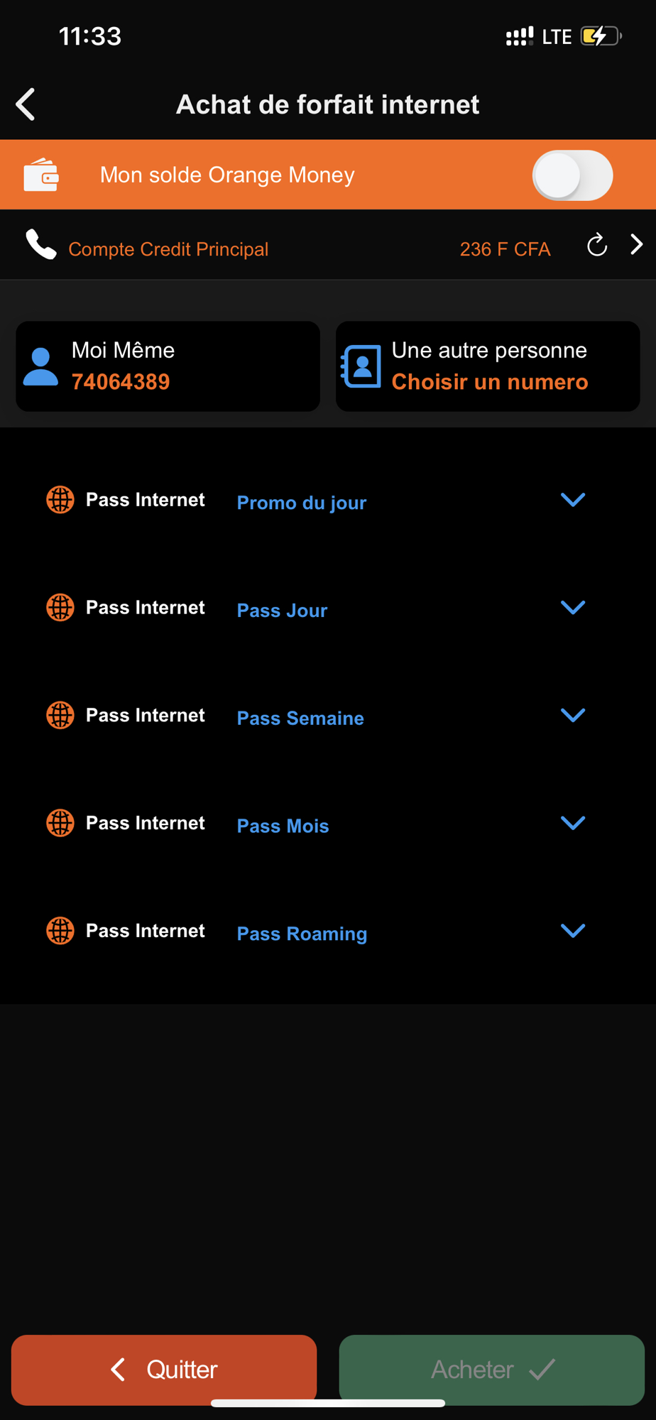 - achat de forfait Orange