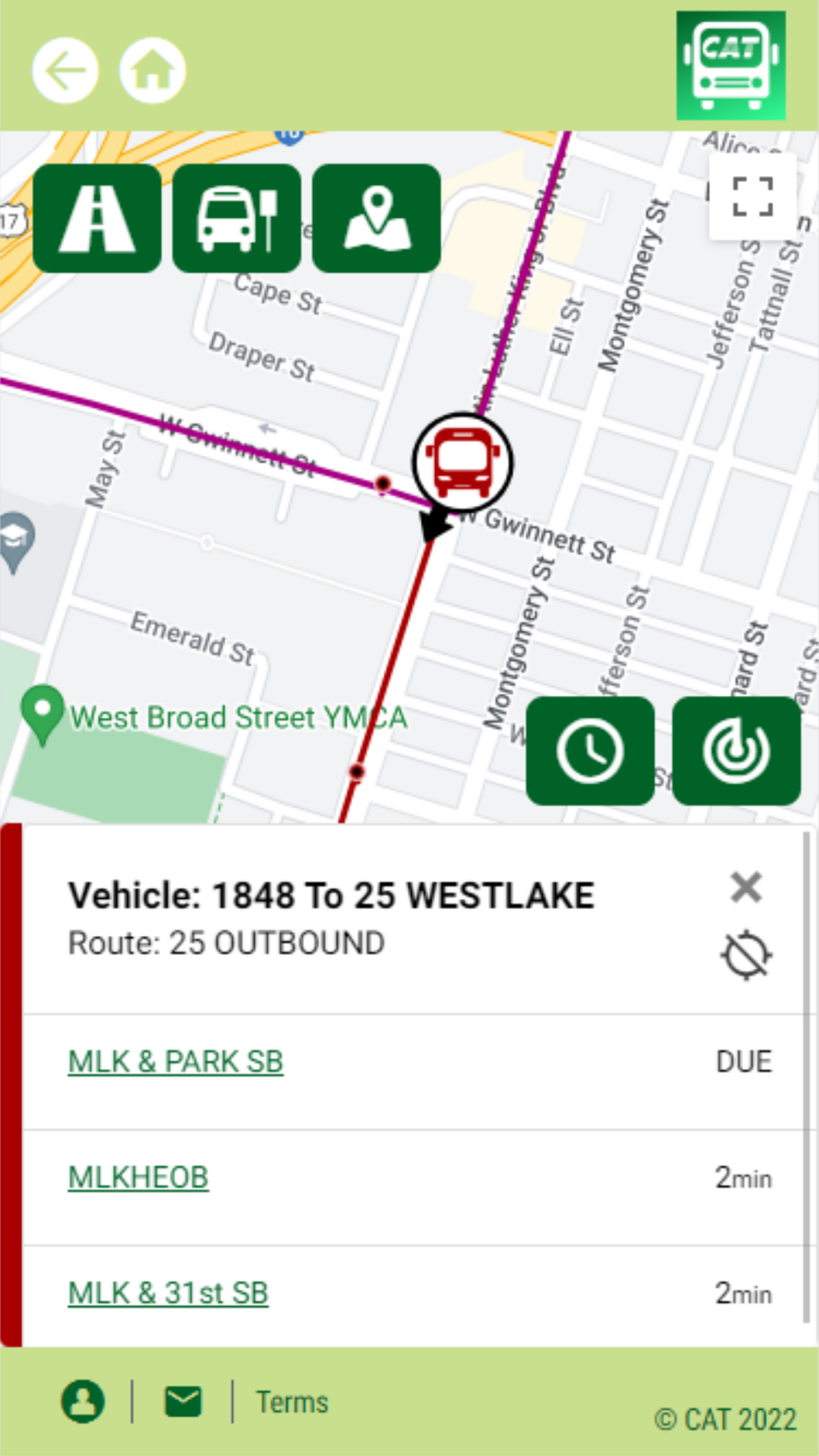 CAT Tracker, your source for real-time bus arrival information in Chatham County. Residents and visitors to now have real-time bus information at their fingertips. Track your bus, get bus arrival information, find nearby stops, find routes, and plan your trip from your mobile device! Save your favorite bus stop on the app to easily view stop arrival times. Subscribe to rider alerts and service detours and be informed before you start your journey. Set up text message alerts so you know when your bus is due. Click on the system map, select a route, and see where your bus is in real time. Enter your starting location and destination to access fast trip planning. Traveling with Chatham Area Transit has never been this easy!