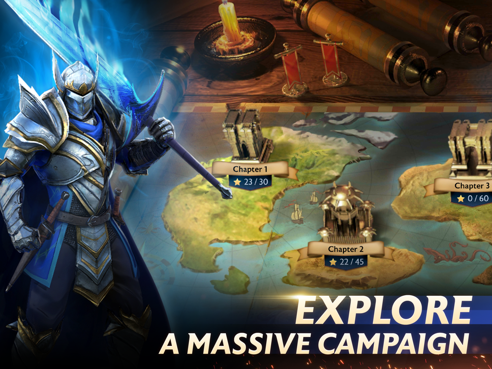 See every detail on your warriors’ faces and experience every scratch in their armor. Behold the sharpness of daggers, the pierce of arrows, and the magic of spells. Feel the power of every hit with cinematic animations and effects.