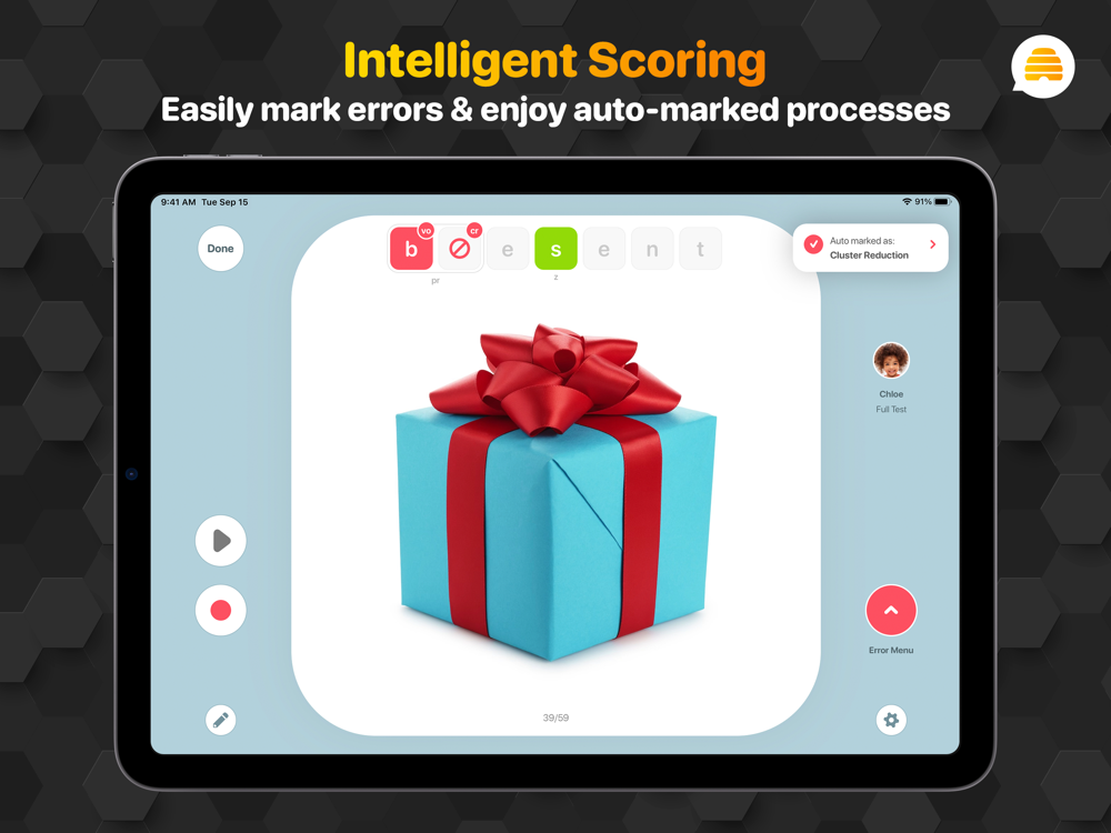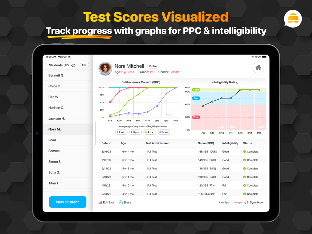 Articulation Test Center Hive (ATC Hive) is a criterion-referenced, articulation and phonology test, created by SLPs for SLPs to assess speech sound disorders in children and adults. It is a smart testing solution that offers flexible testing options, interactive speech scenes, comprehensive test results, and auto-generated, data-driven reports that will save you time!