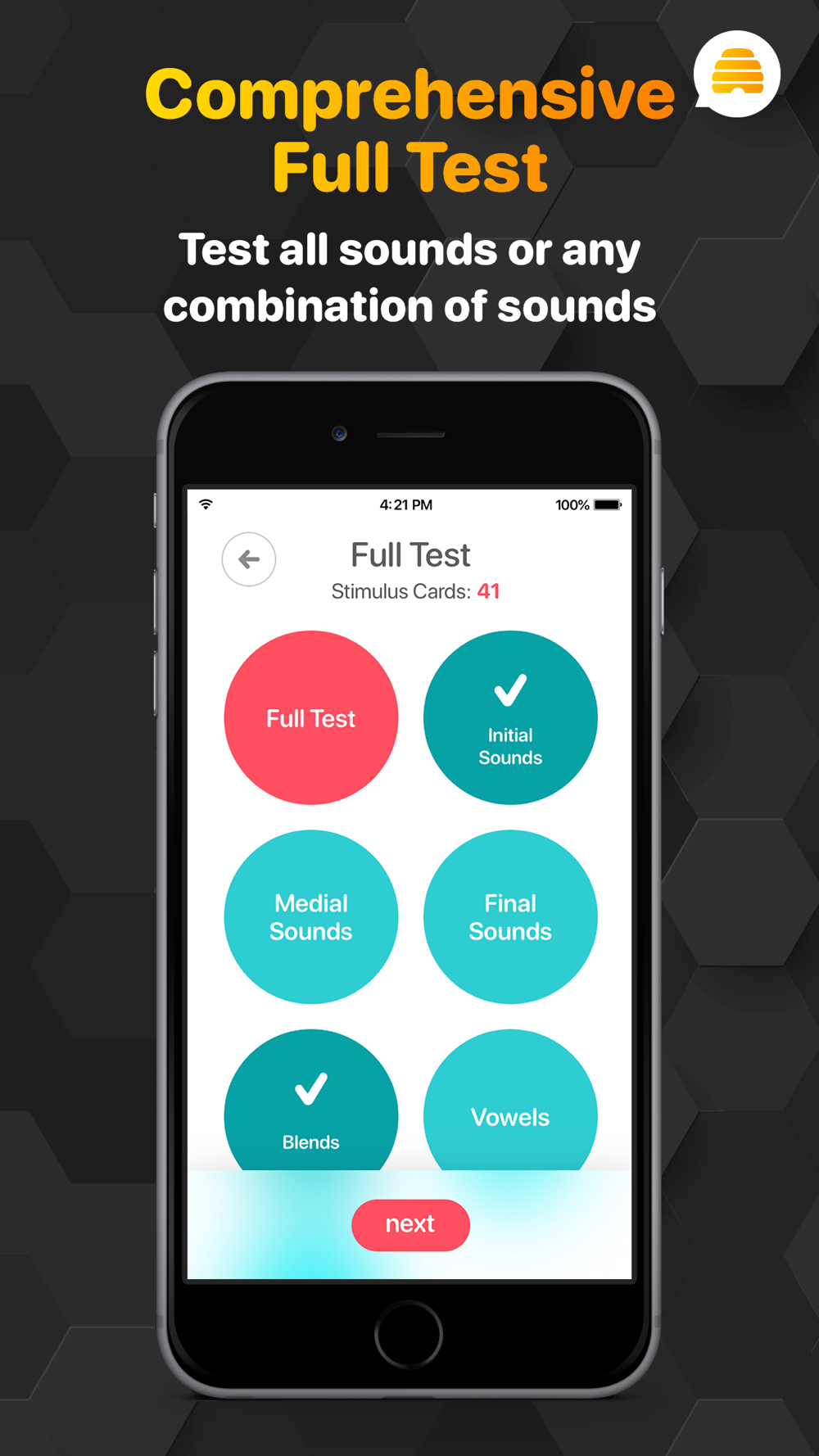 Articulation Test Center Hive offers a 7-day free trial which includes unlimited access to both Articulation Test Center Hive and Articulation Station Hive. The subscription automatically renews unless the auto-renew feature is turned off at least 24 hours before the end of the current period. Payment will be charged to your Apple account at the end of your 7-day trial period. Subscriptions may be managed by the user and auto-renewal may be turned off at any time.