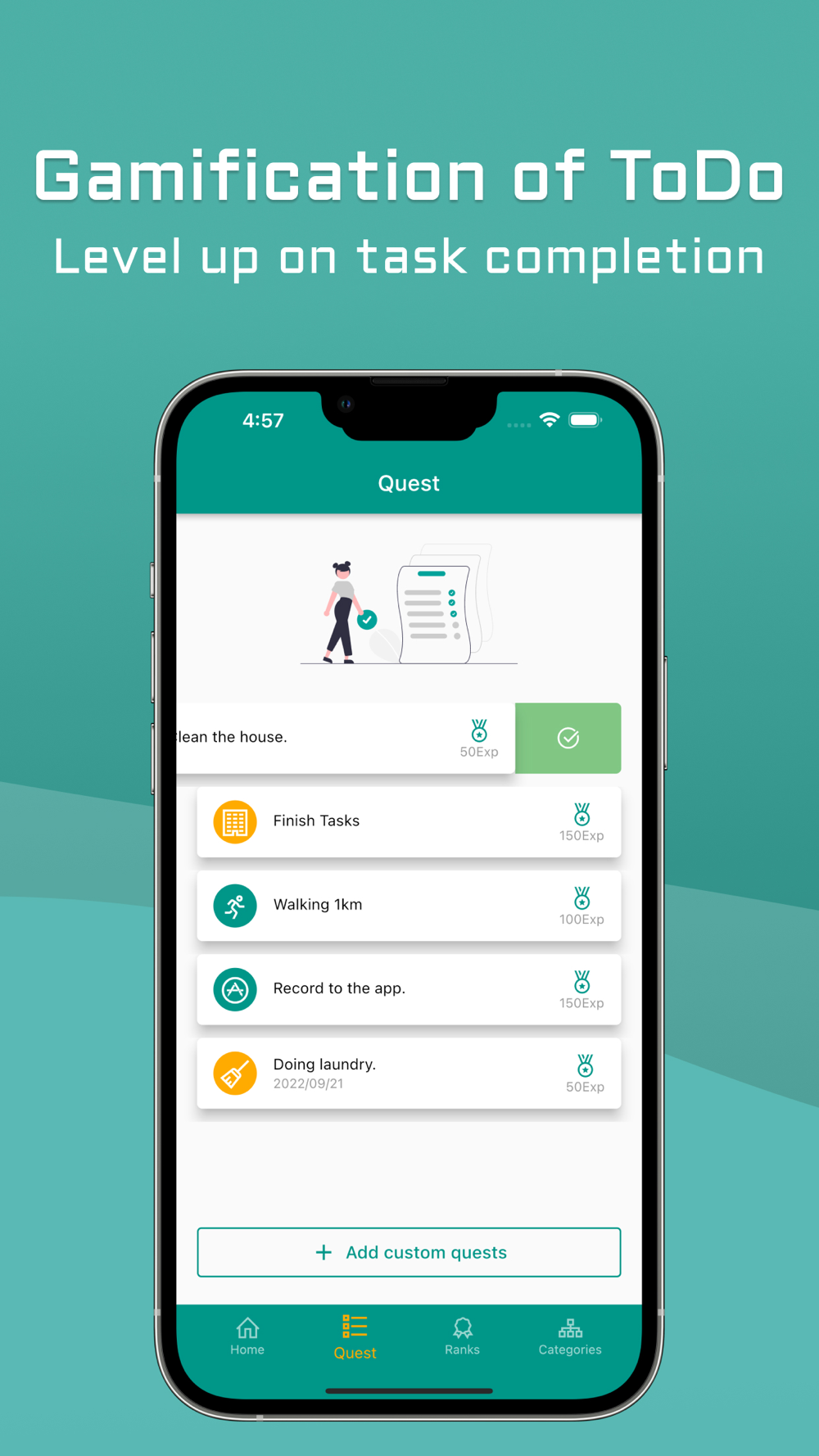 You can use HibaQuest as a simple ToDo list, or you can enjoy completing the quests offered by the management as a daily challenge.